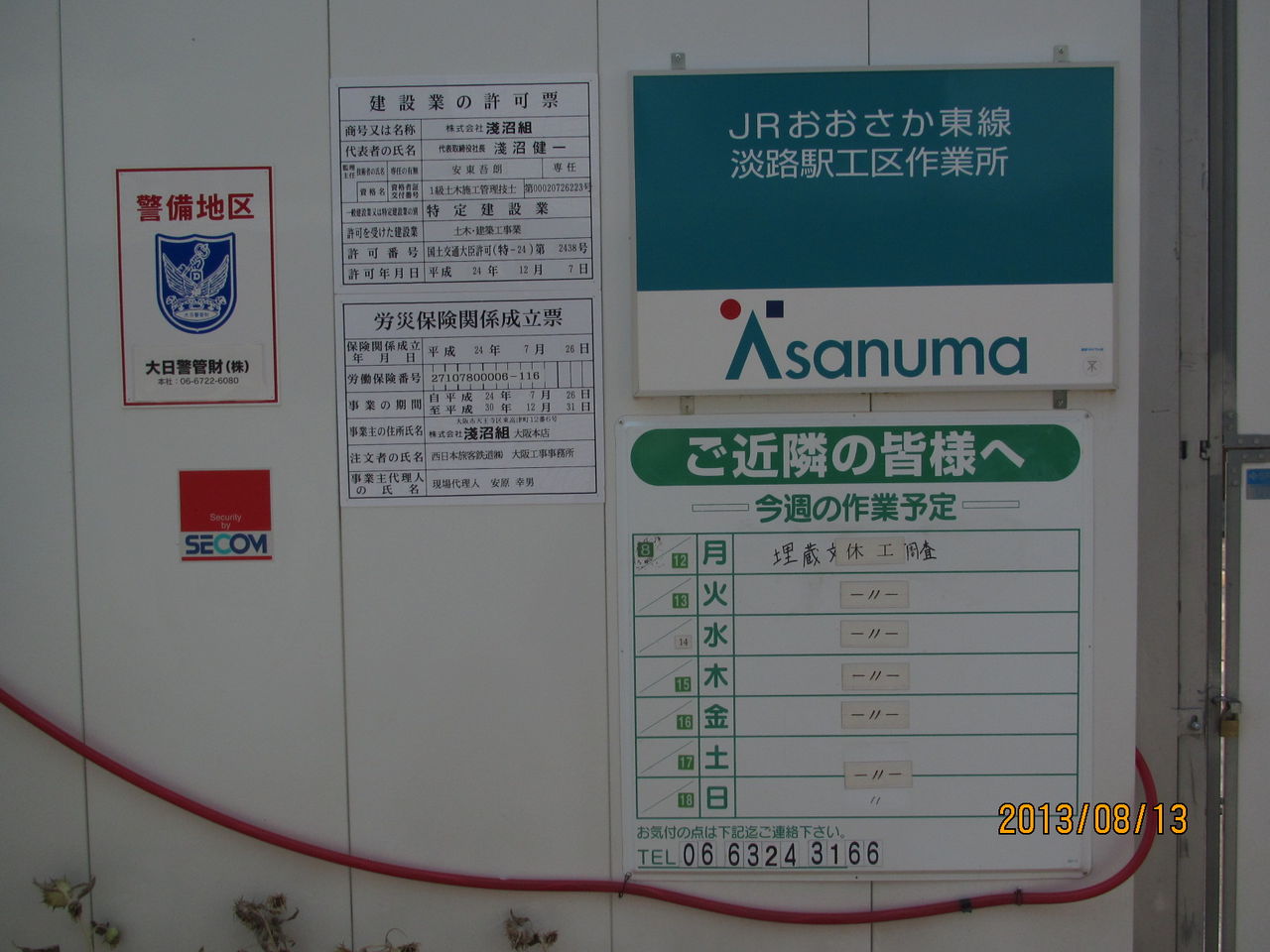 近くには、「JRおおさか東線 淡路駅工区作業所」 と書かれた看板があります。