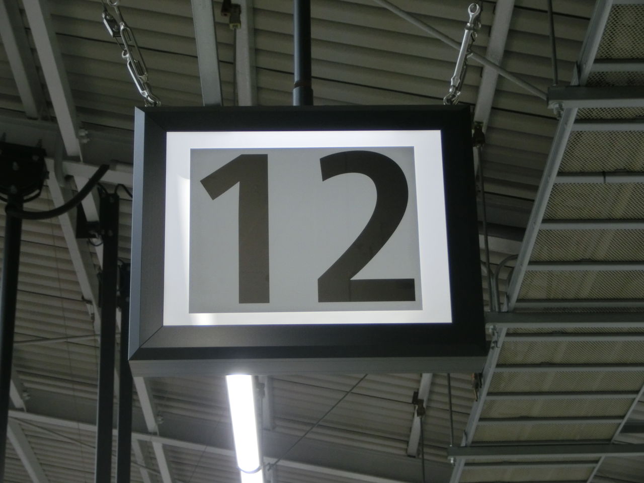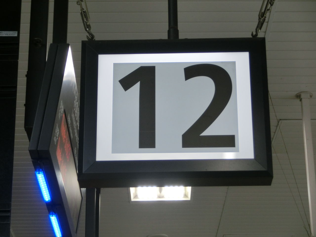 12番のりばの発車標も、のりば番号の部分が既に更新されており、 「12」 と書かれたシールが貼られています。