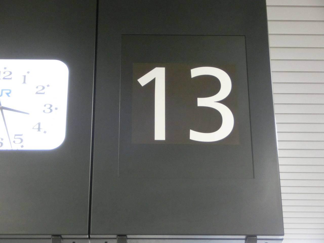 13・14番のりばの発車標も、のりば番号が既に更新されており、変更前の番号が書かれたシールが貼ってあります。