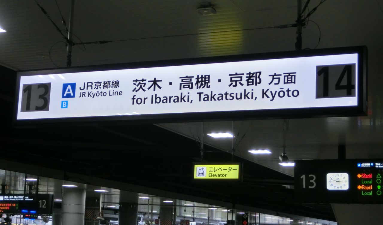 続いては、13・14番のりば(JR京都線ホーム)です。