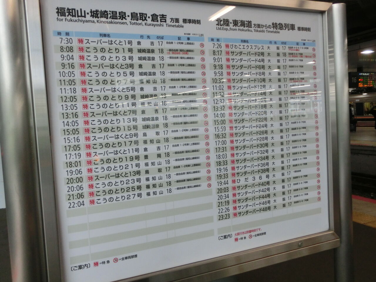 今回、のりば番号が変更される前日に新大阪駅を訪れ、ホームやコンコースで 新旧のりば番号を撮影してきました。