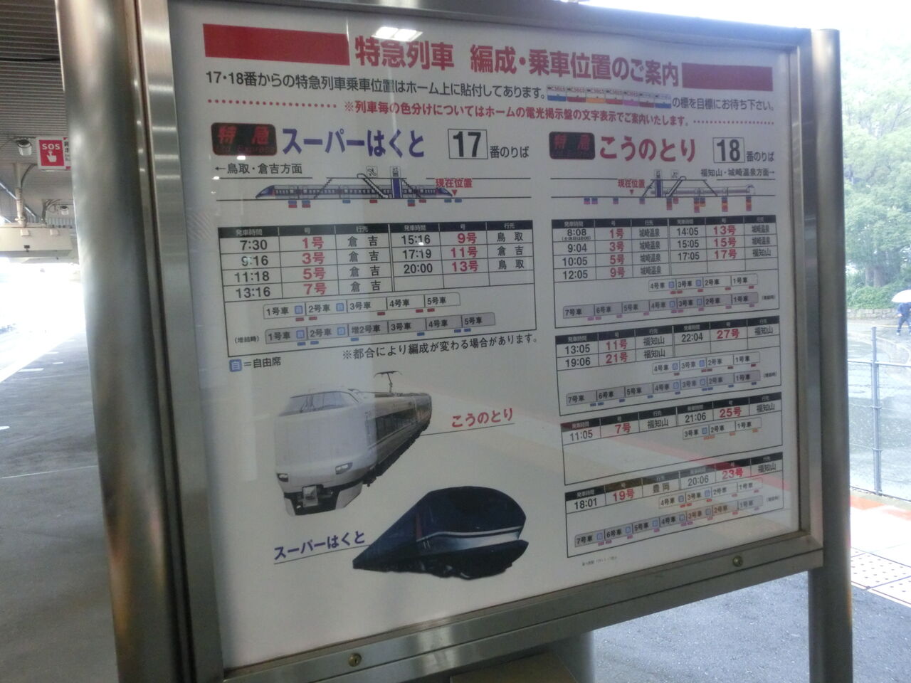 ホーム中程の下りエスカレーター前に設置されている案内看板です。