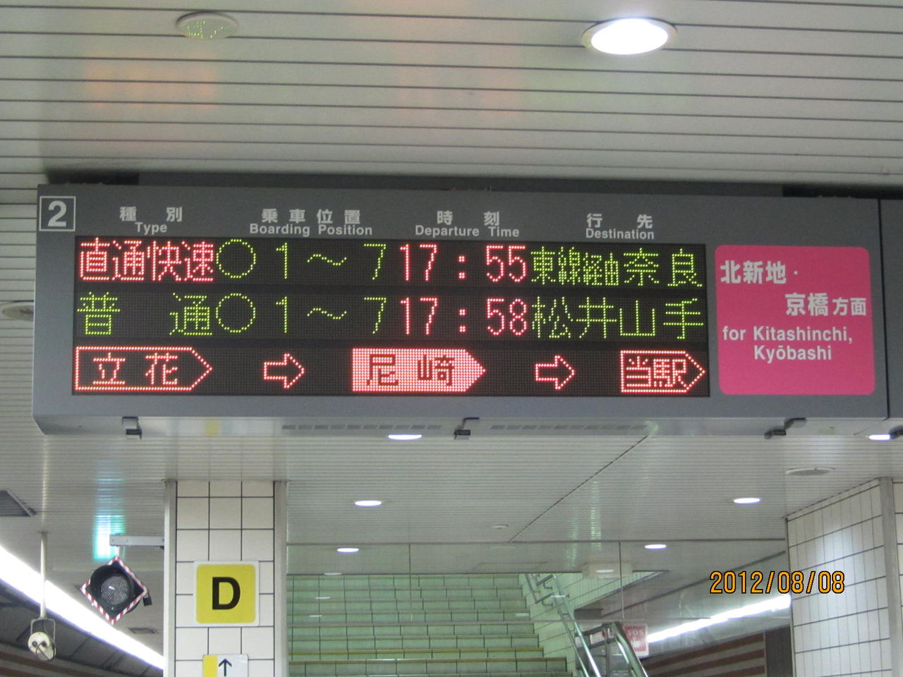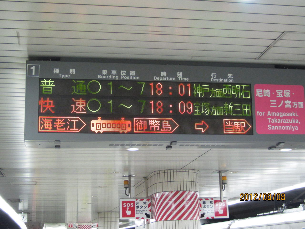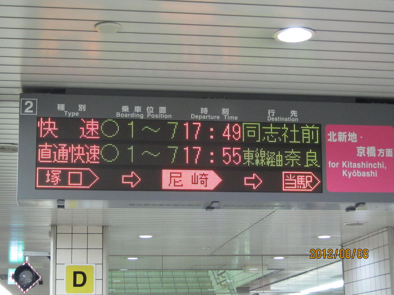 ここでは、加島駅の電光掲示板をご紹介。