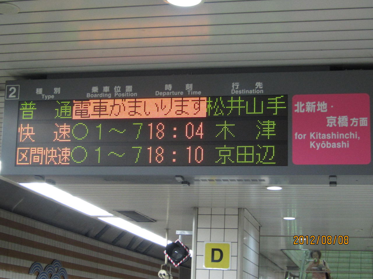 続いて、2番のりばの電光掲示板。