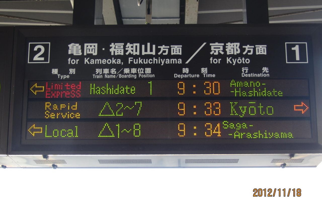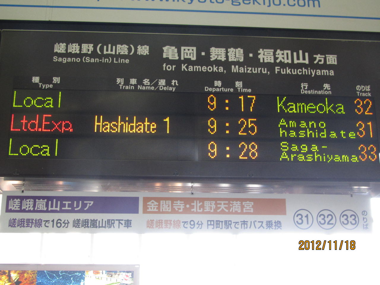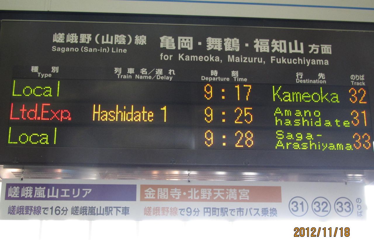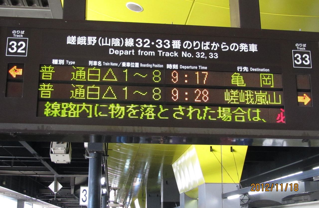 嵯峨野線の時刻表に載っていない行き先 「嵯峨嵐山行き」。