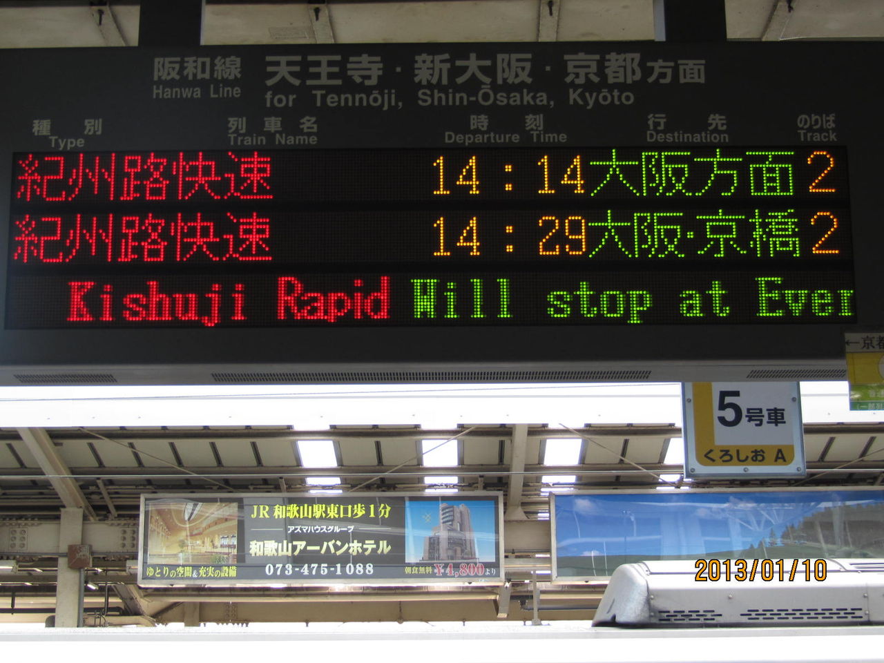 今回は、そんな和歌山駅のホームに設置されている電光掲示板をご紹介。