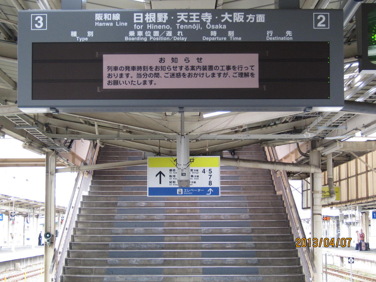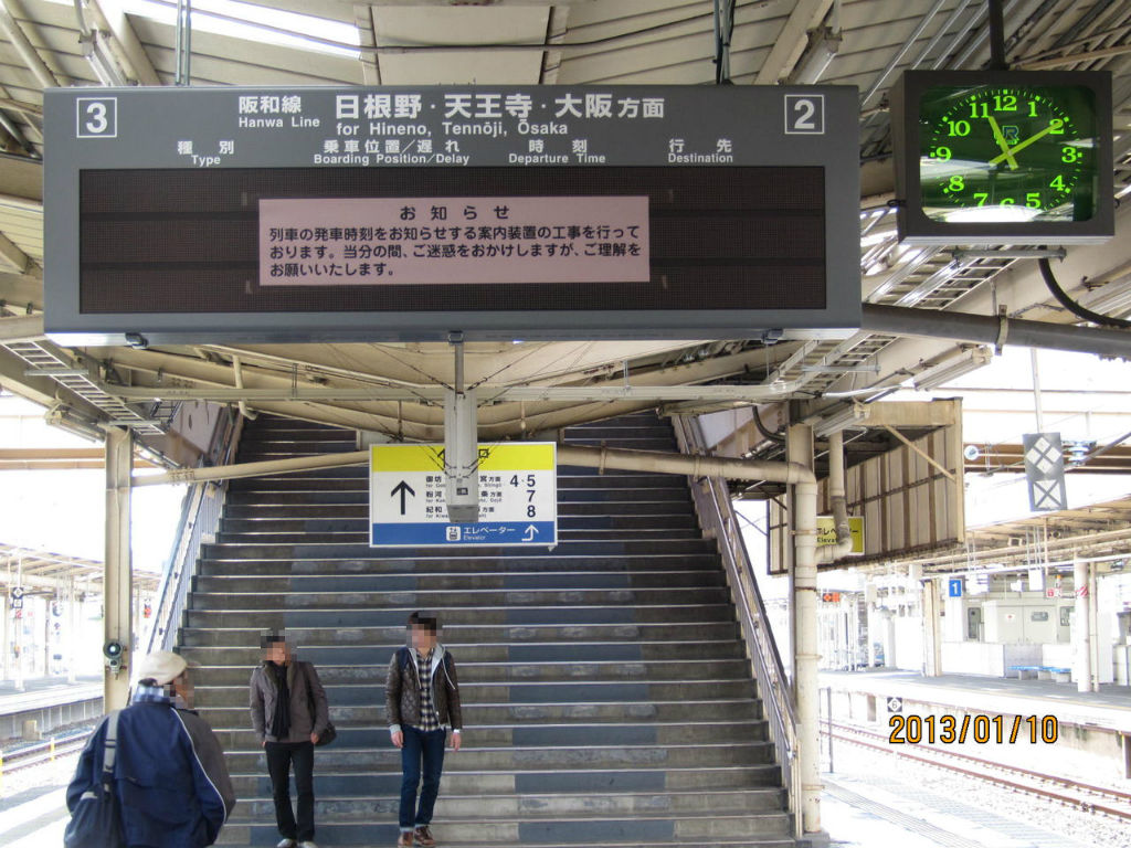 こちらは 「次の列車」 ではなく、阪和線 日根野・天王寺・大阪方面 と書かれています。