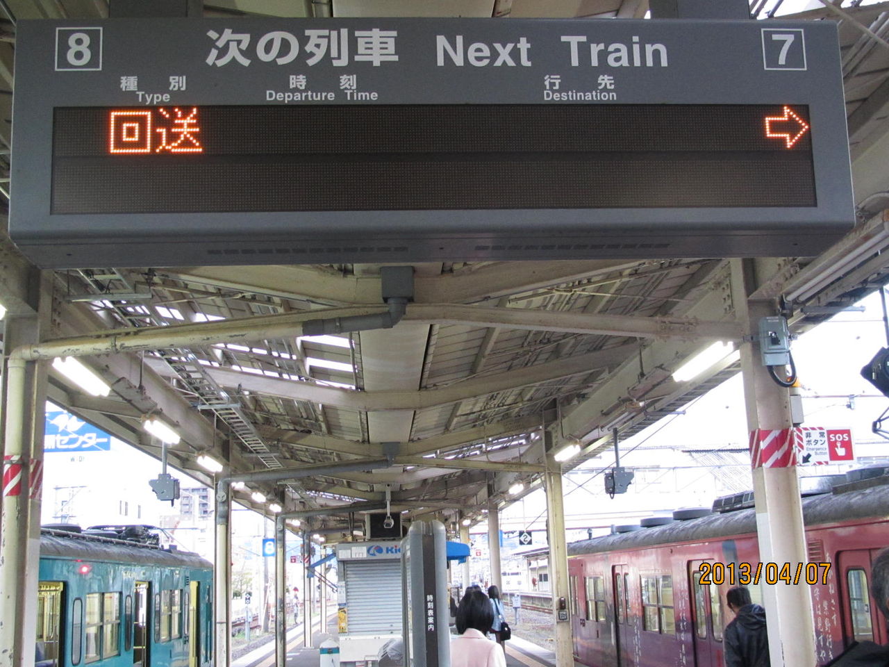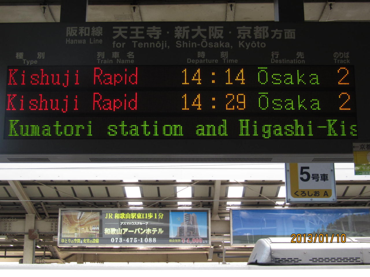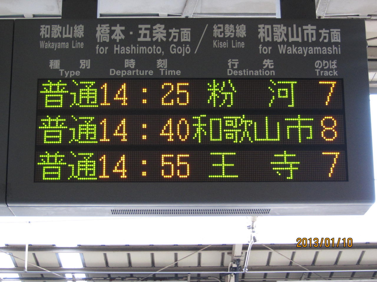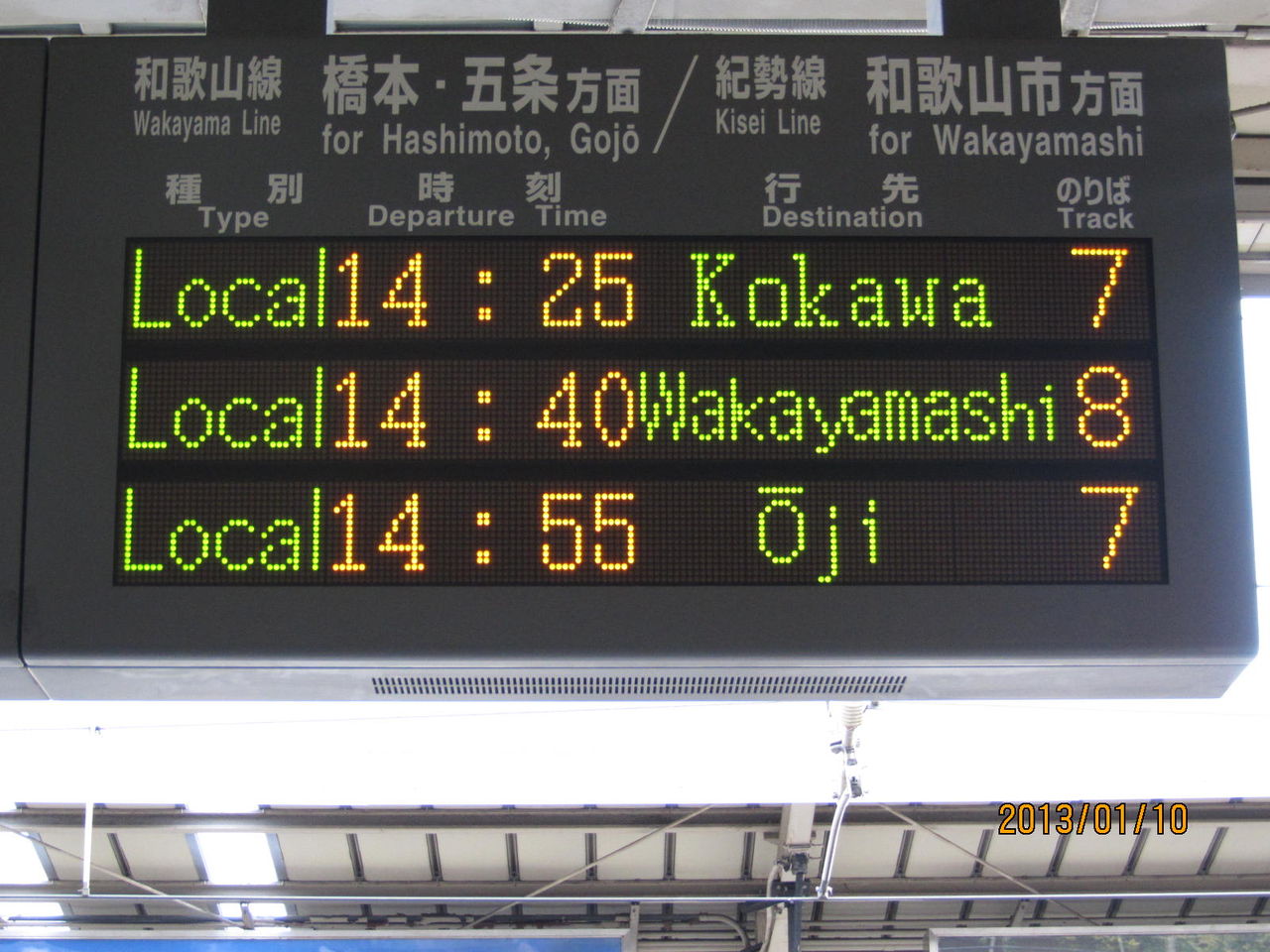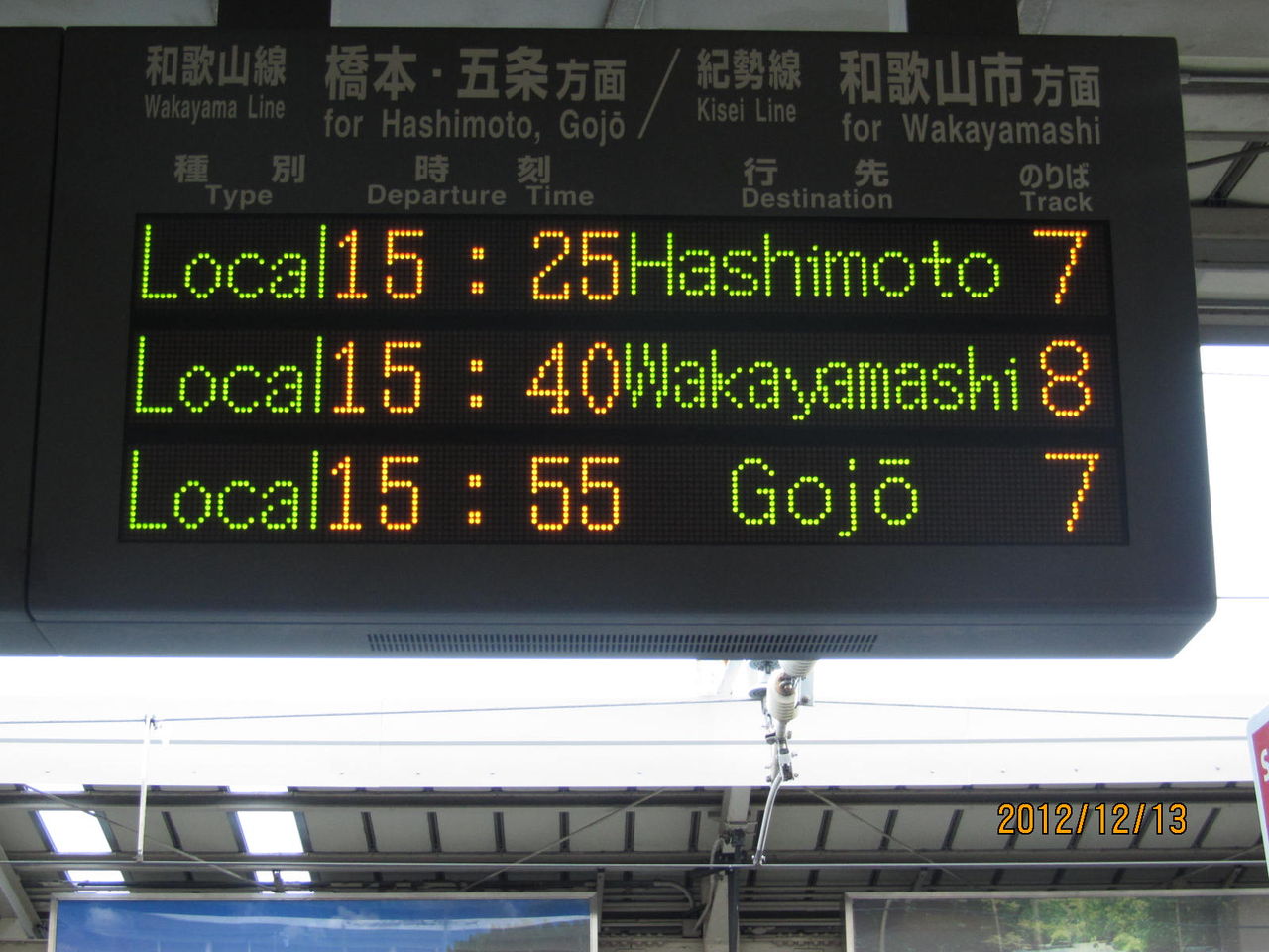 和歌山駅の電光掲示板には、写真のように 次の列車 Next Train と書かれています。