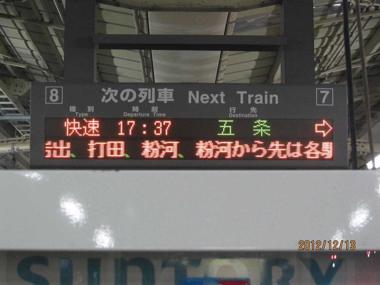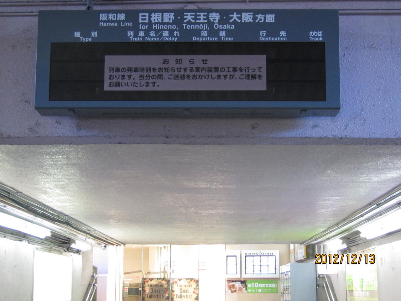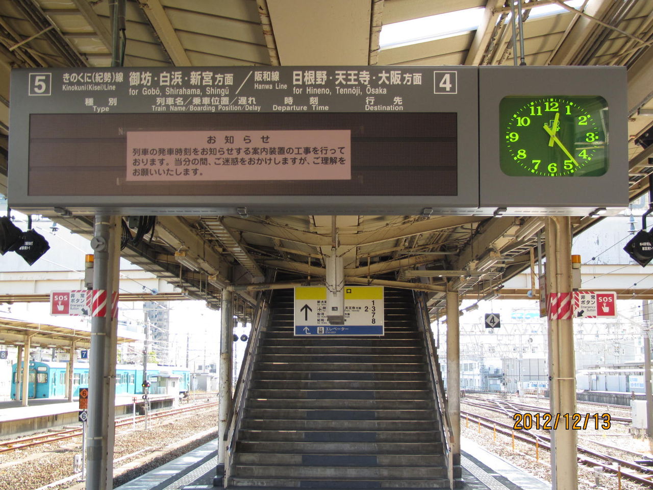 2012年12月13日の撮影時、このホームには まだ新しい電光掲示板が設置されていませんでした。