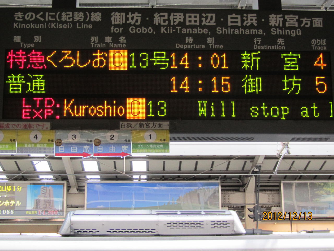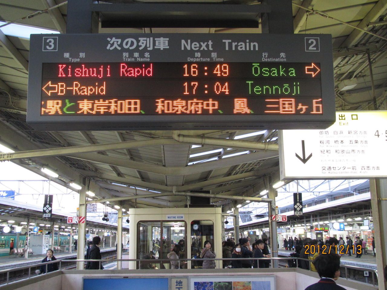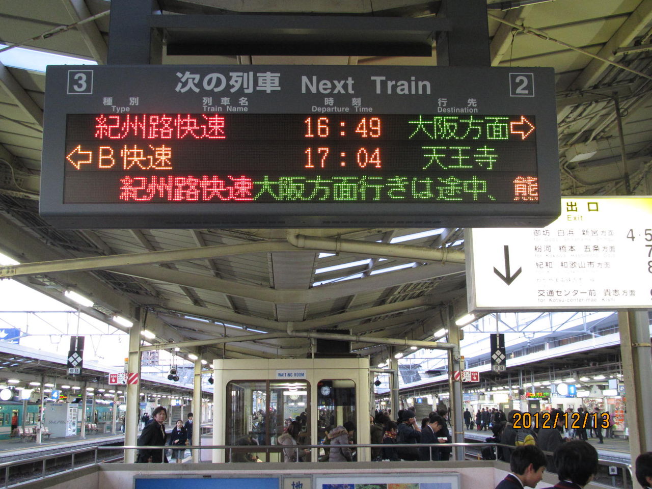 2012年12月13日の撮影時、このホームには まだ新しい電光掲示板が設置されていませんでした。