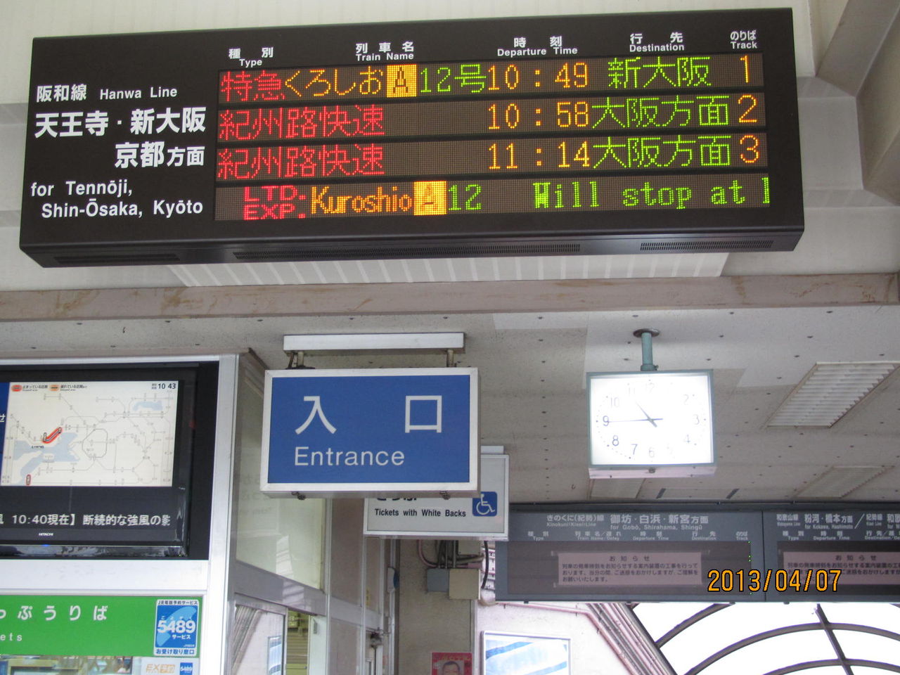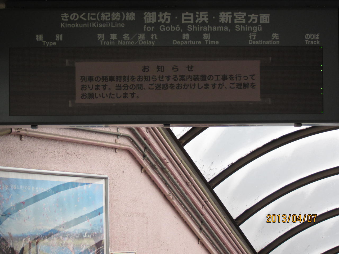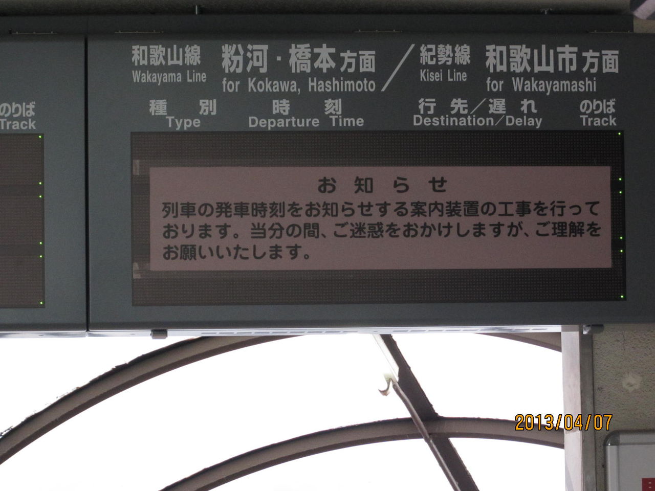 ここには これまで、阪和線の発車案内しかなかったたため、きのくに線・和歌山線・紀勢線(和歌山市行き)の発車案内が新たに設置されています。