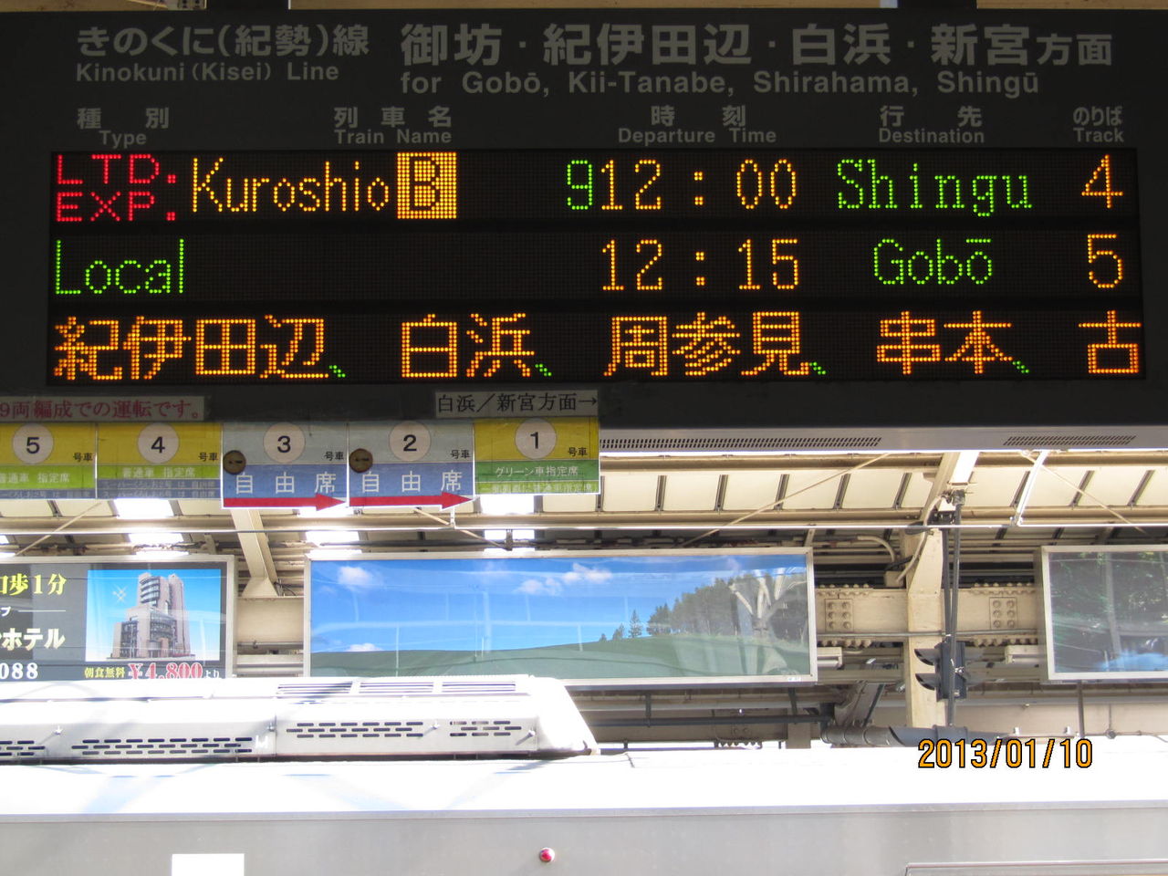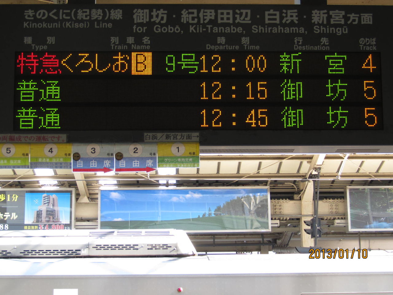 続いては、きのくに線の発車案内。