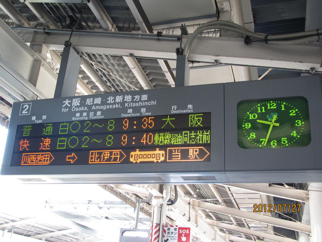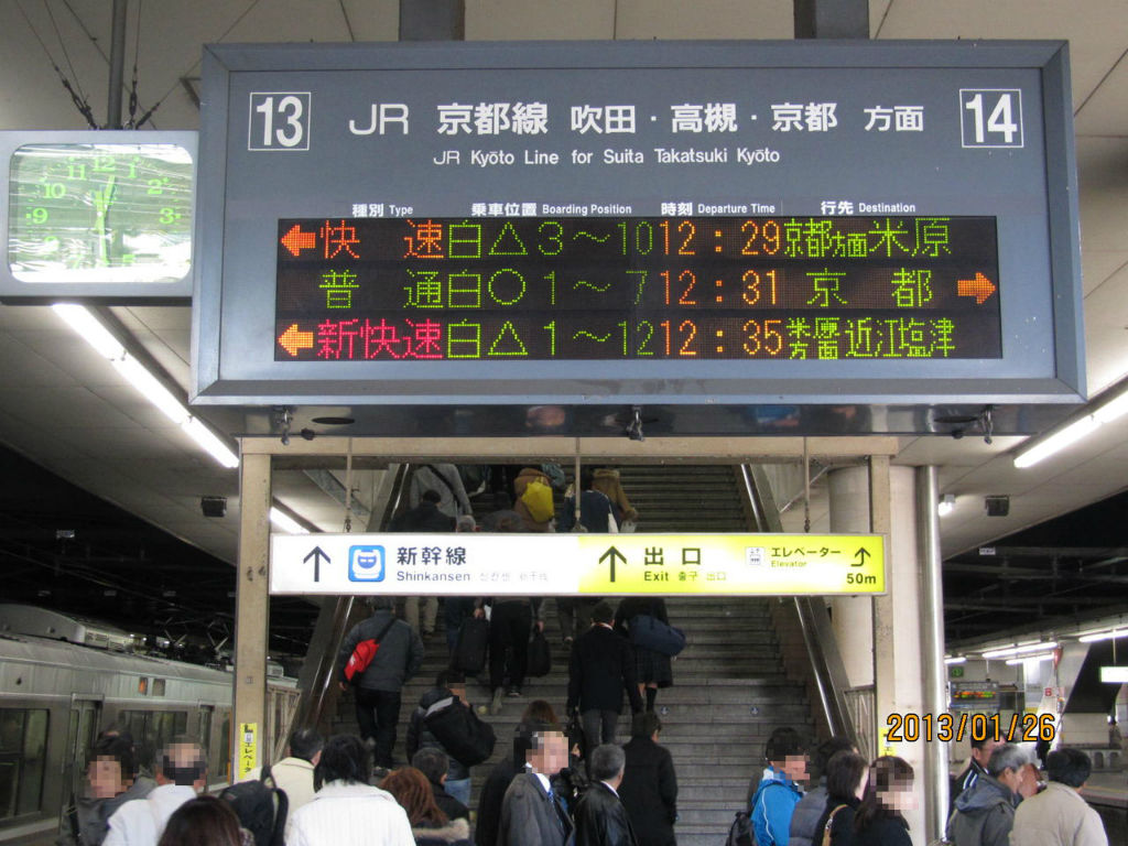 上が大阪駅、真ん中が伊丹駅(JR宝塚線)、下が宇治駅(JR奈良線)です。