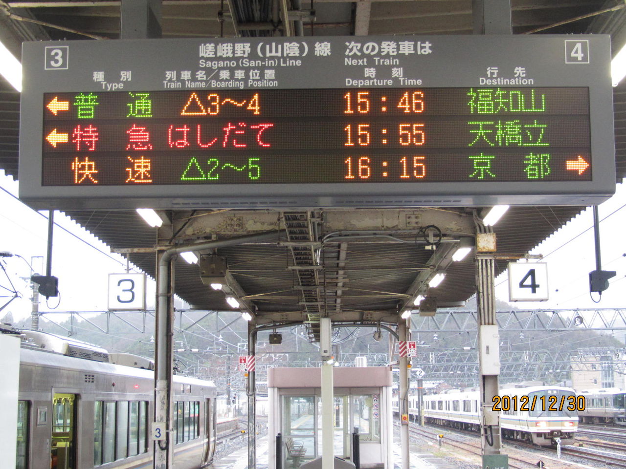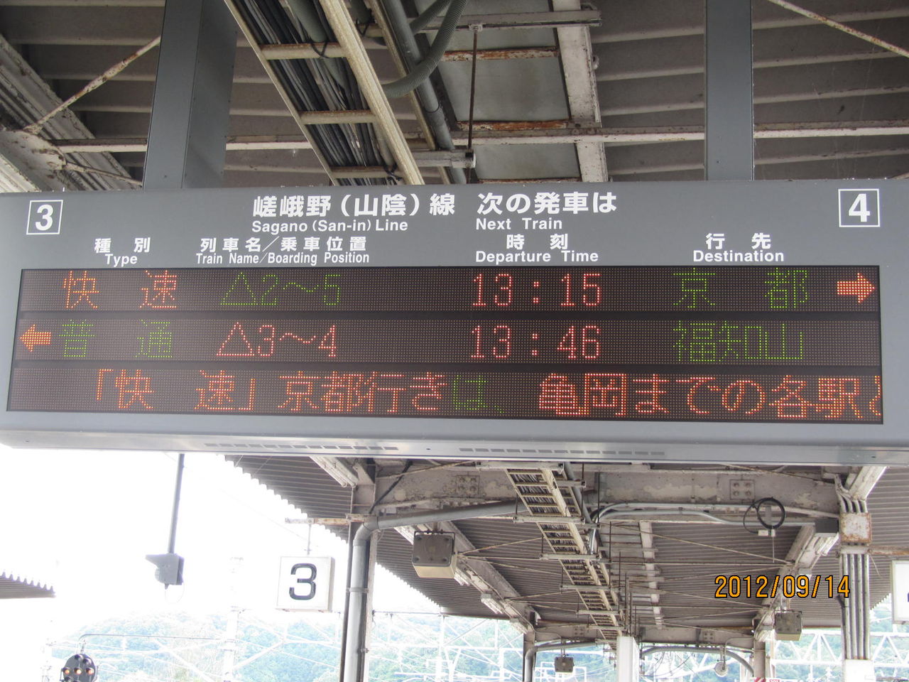 園部駅(嵯峨野線)の電光掲示板。
