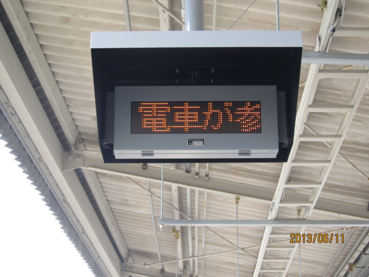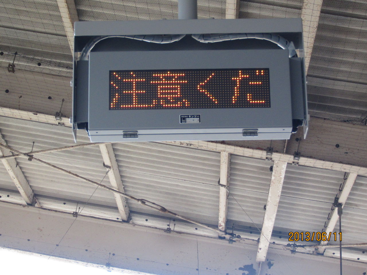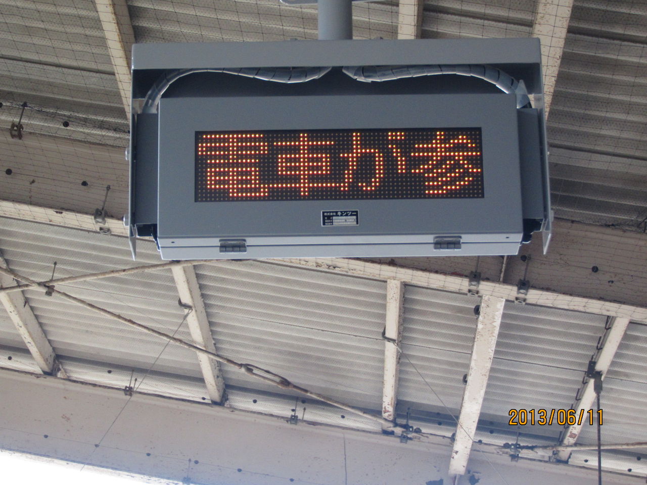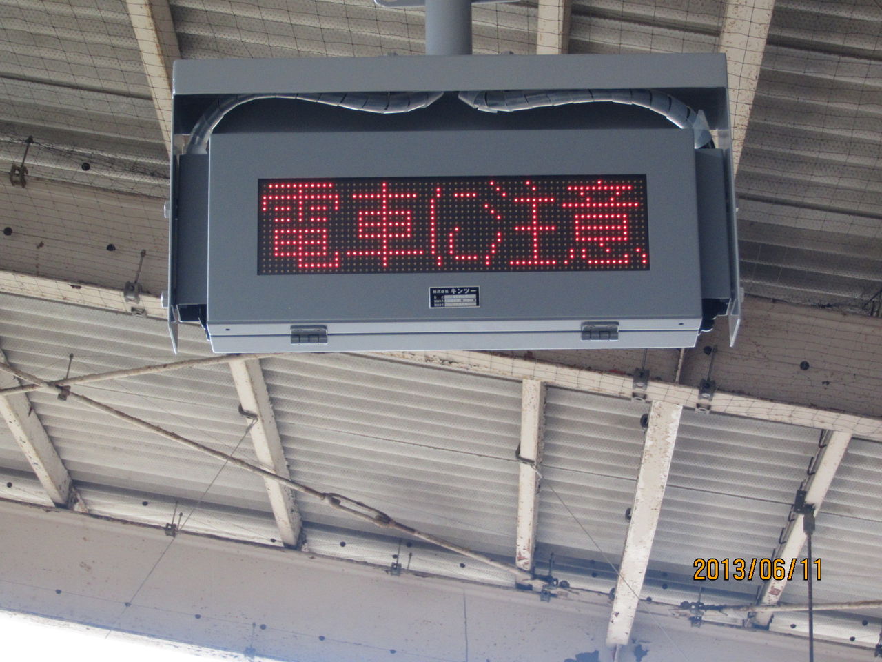 ②電車が参ります ご注意ください とオレンジ色でスクロール表示
