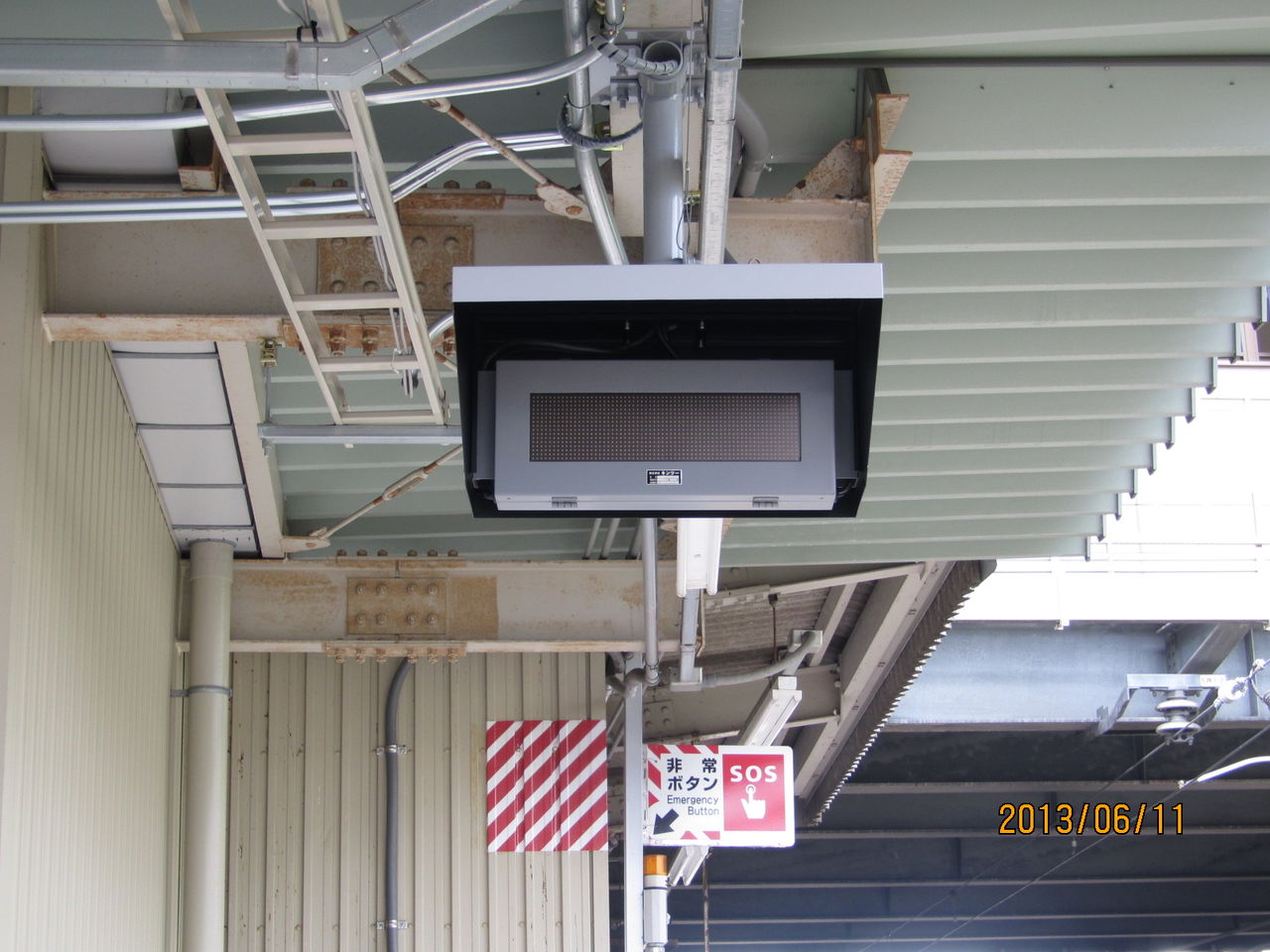 この駅も 乗車ホームの2ヶ所に 接近表示器が設置されていましたが、鳳駅のものと異なり、カバーは取り付けられていません。