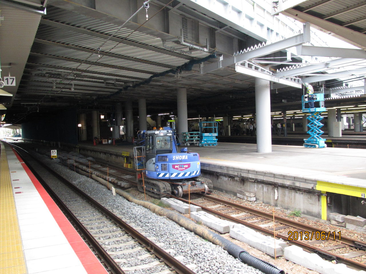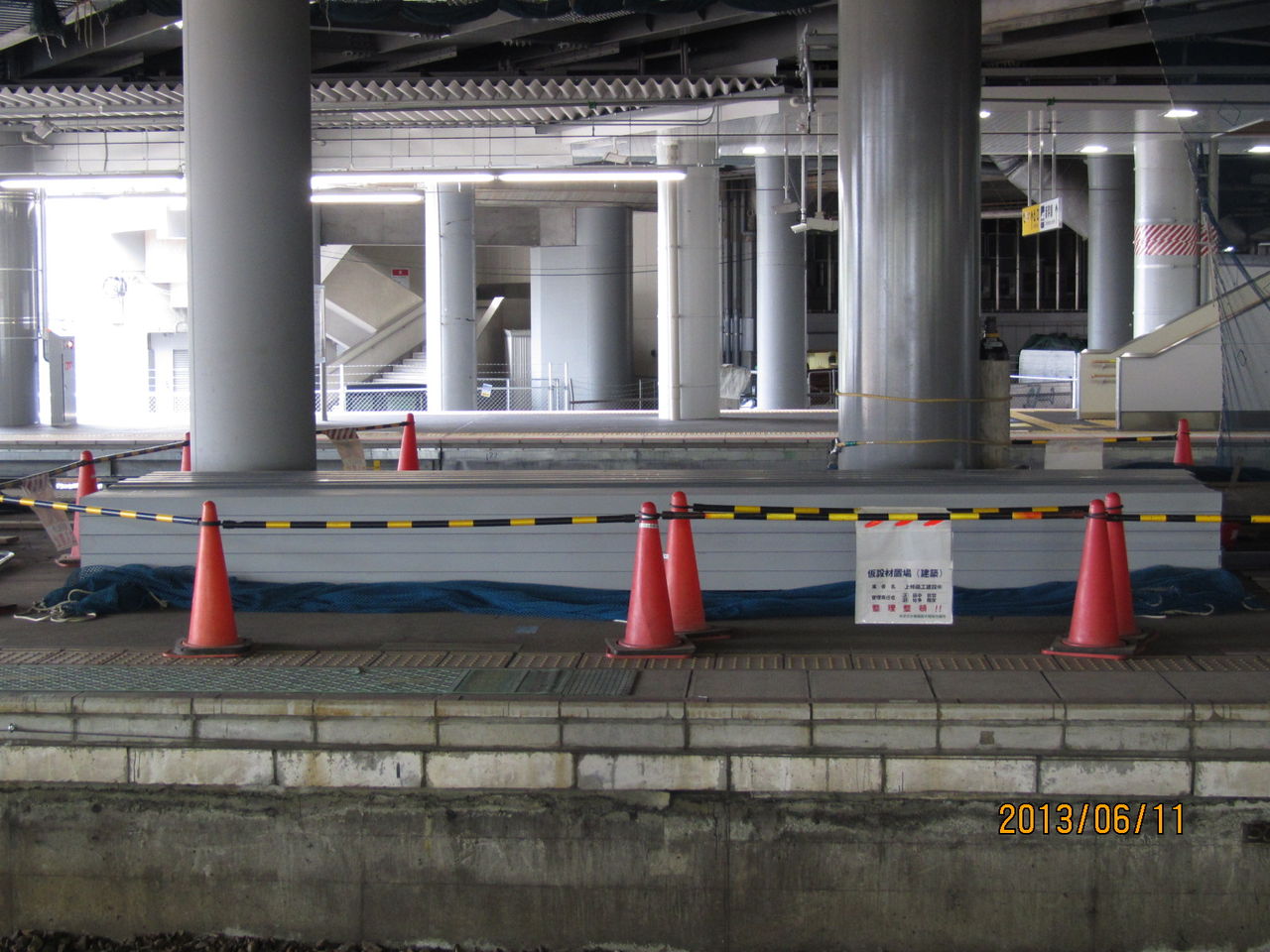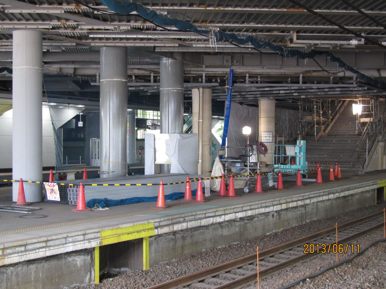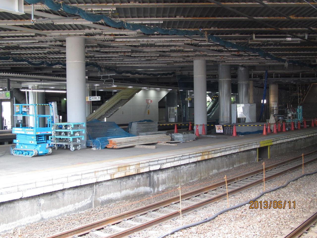 新大阪駅 工事中の旧17・18番のりばにエスカレーターが設置される (2013年6月)