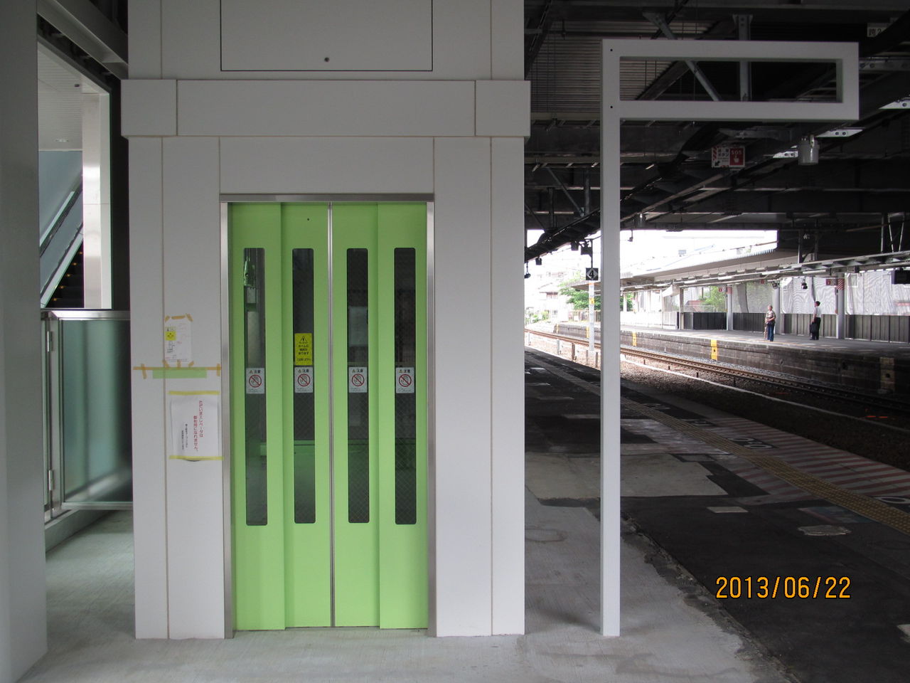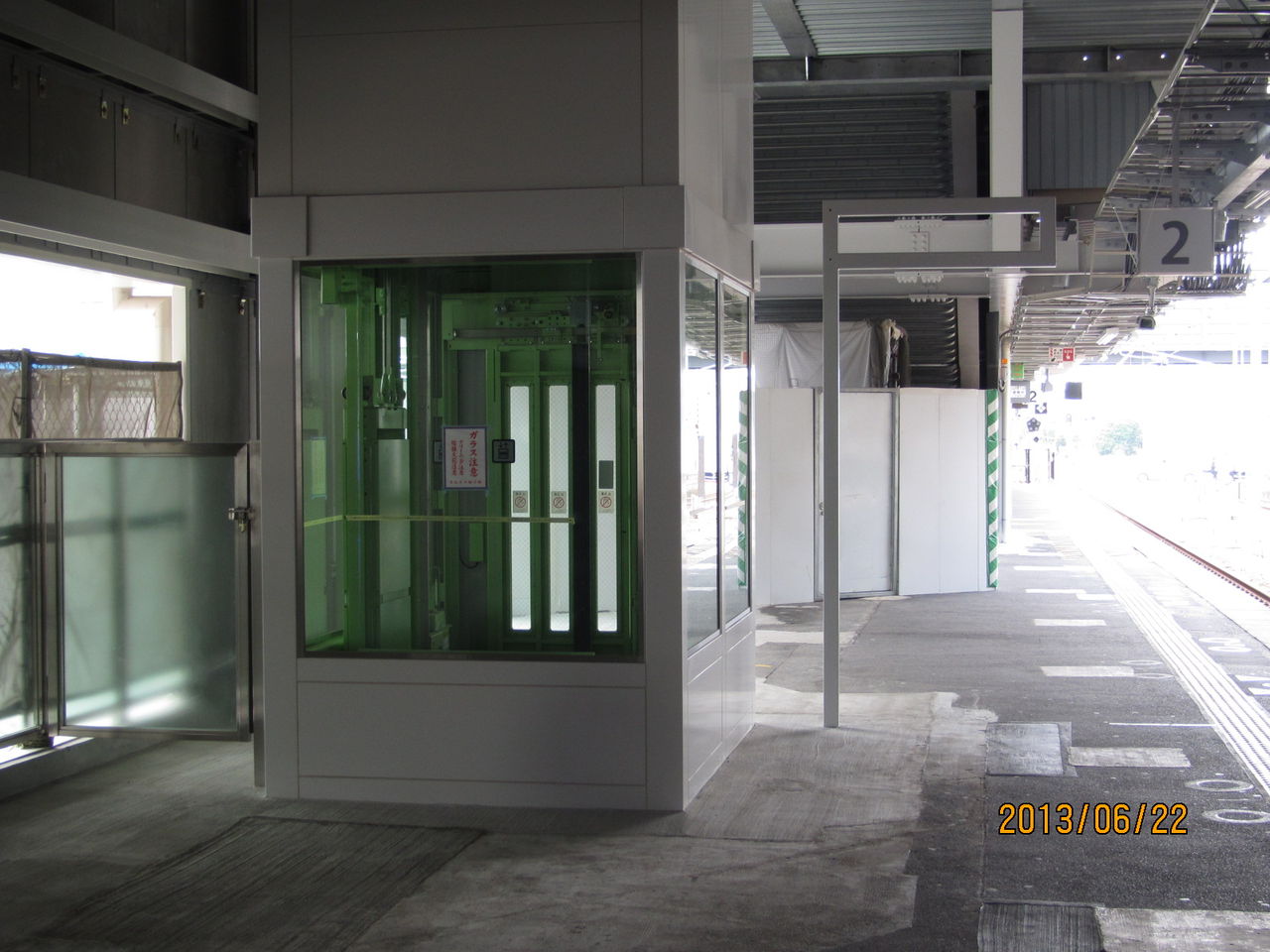 新駅舎のエレベーターを撮影。