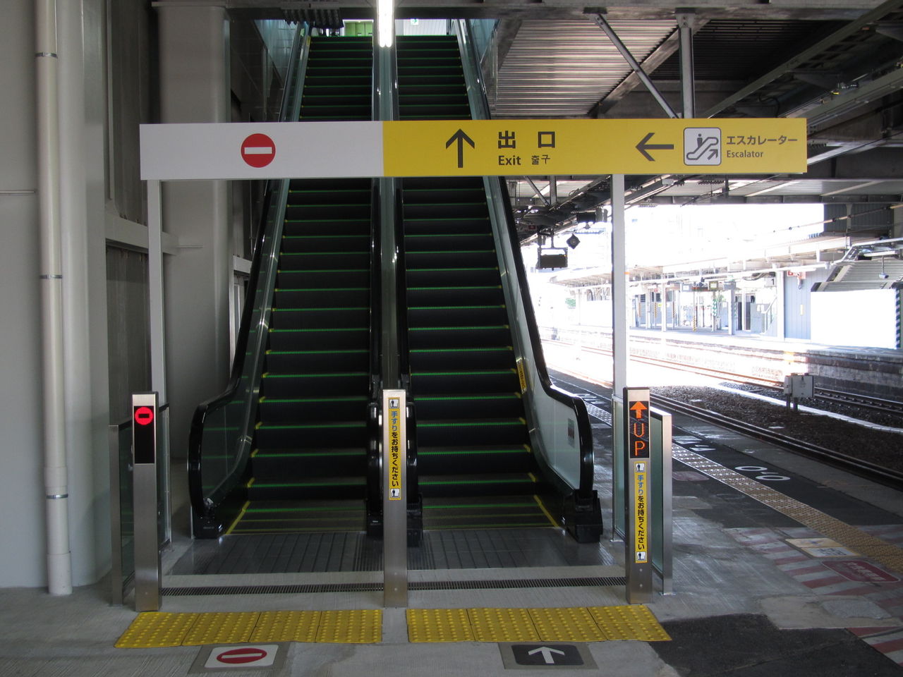 前回見た時は まだ閉鎖されていましたが、新駅舎の使用開始と共に 延伸部分も使用開始されています。