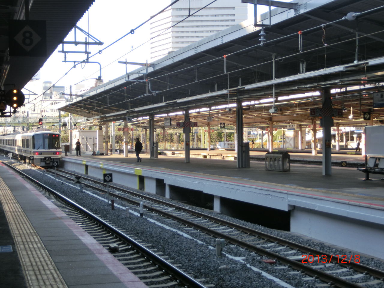 ここでは、ホームの大阪側の様子と 駅南側の陸橋から撮った写真、新17・18番のりばから撮影した写真を紹介します。