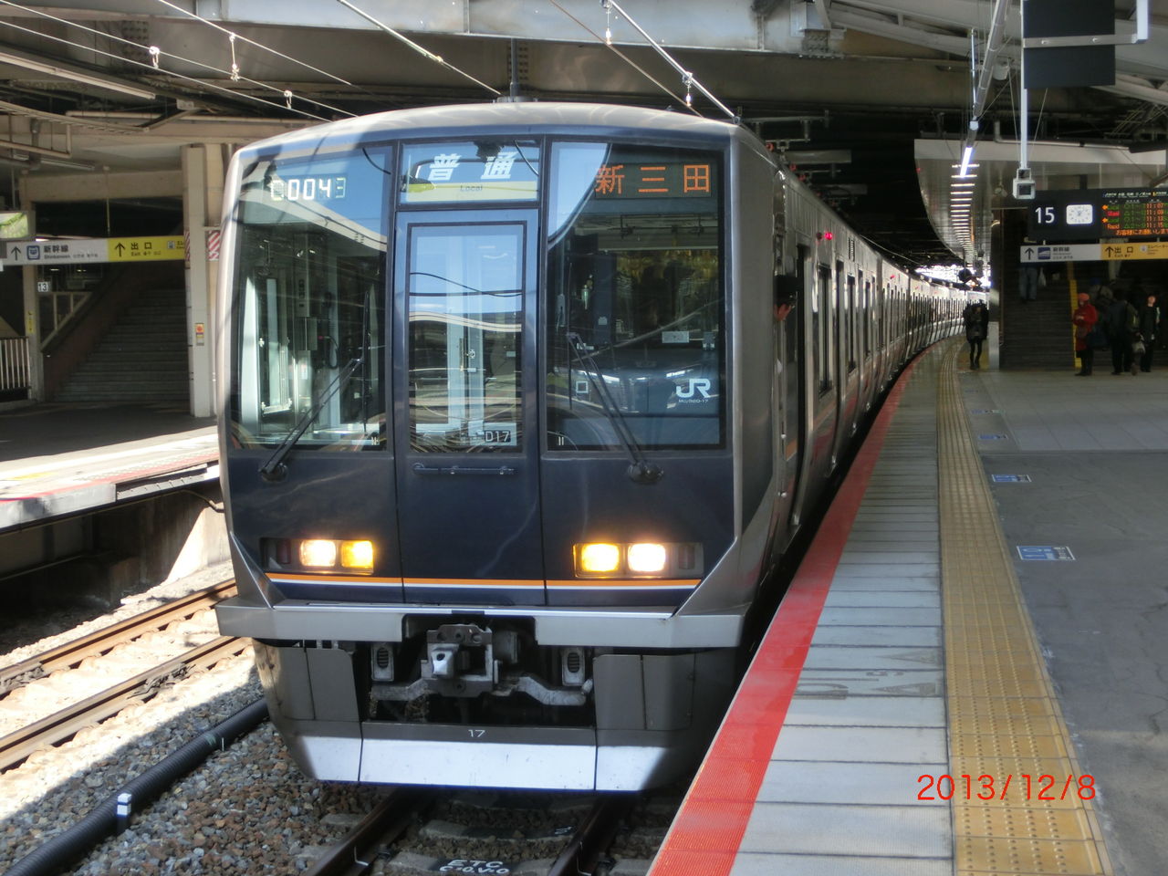 新15番のりばに停車中の207系(普通 西明石行き)と 321系(普通 新三田行き)を撮影。