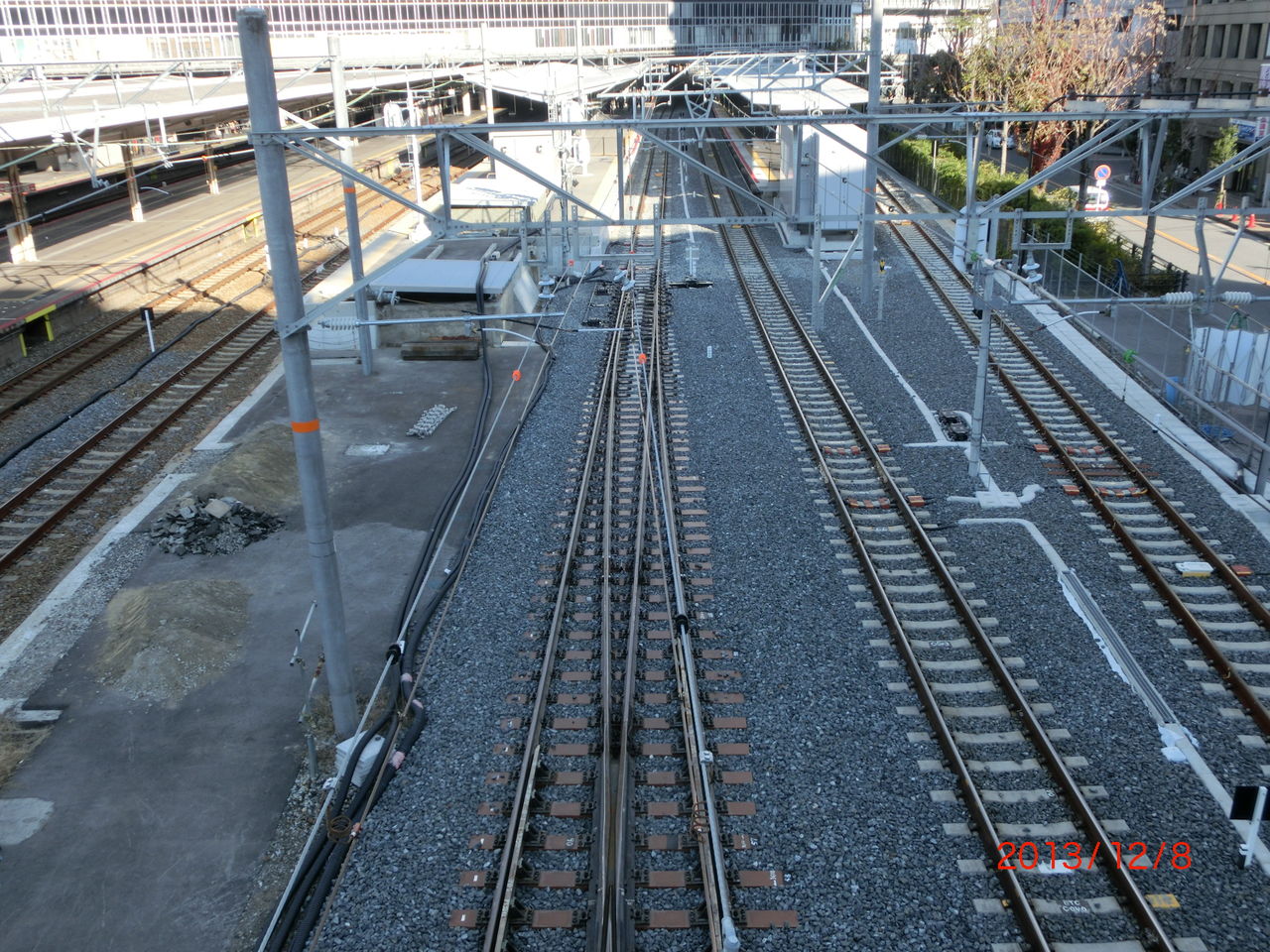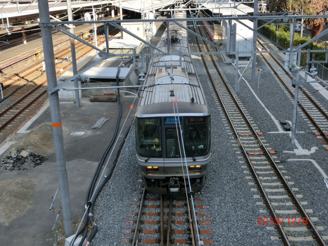 新16番のりばから外側線への渡り線が新設されたことにより、新快速が 渡り線を通って外側線を走行するようになっています。