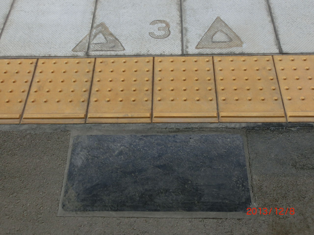 ホームの大阪側でも、ある場所を境に 床がタイルからアスファルトに変わっていますが・・・