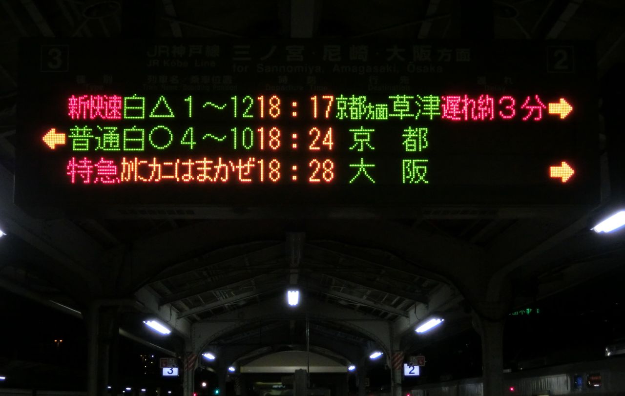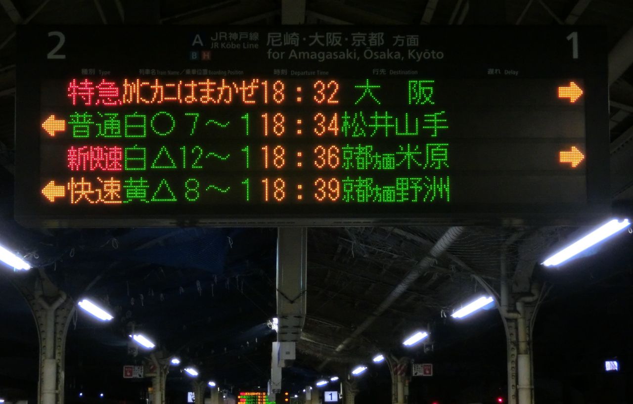 JR京都線・JR神戸線では 発車標の表示が全駅で統一されています。