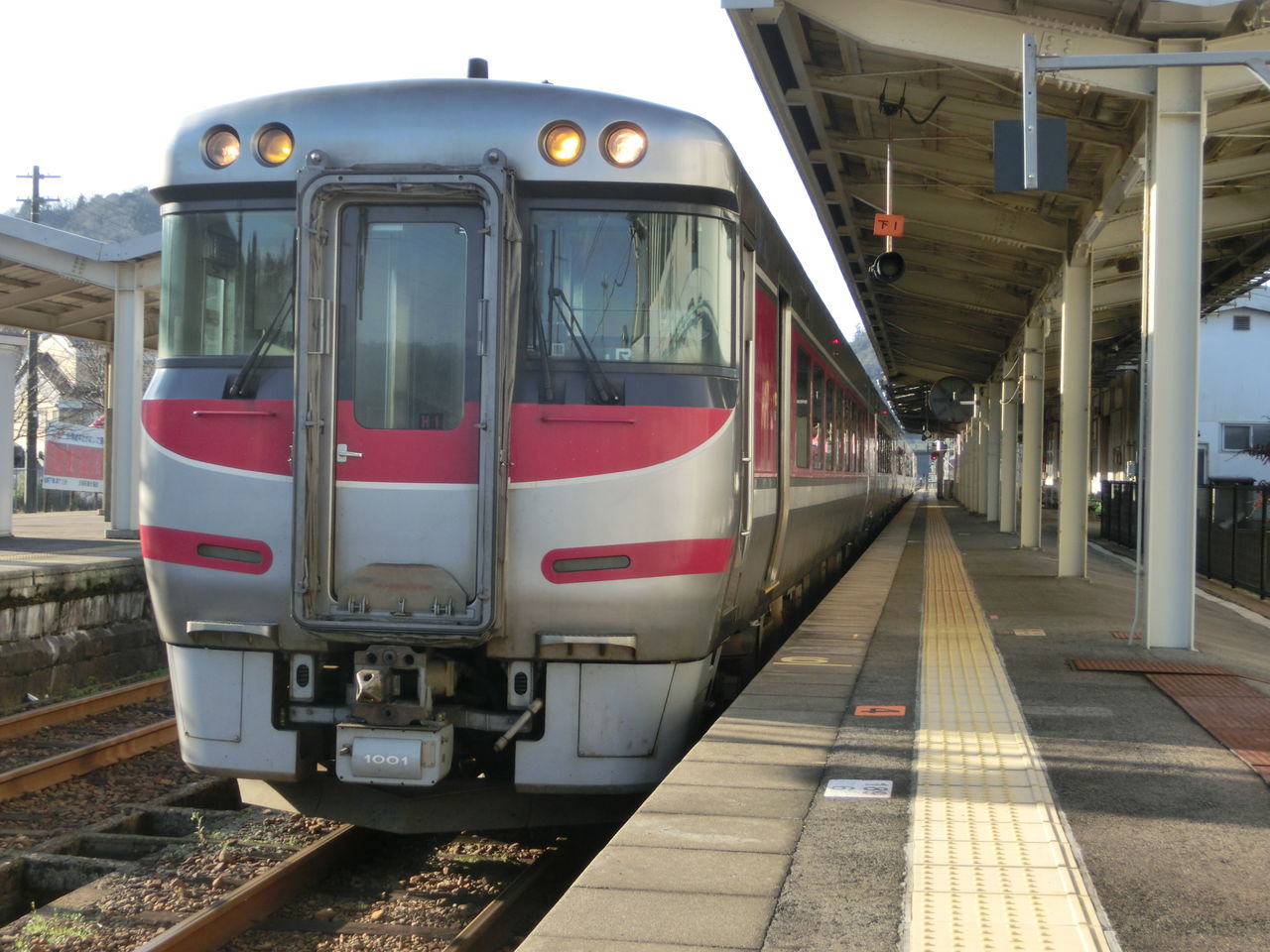 特急列車は、上下共に 駅舎側の単式ホーム・3番のりばを発着しますが、発車標が設置されているのは 島式ホームの1・2番のりばだけで、3番のりばには設置されていませんでした。