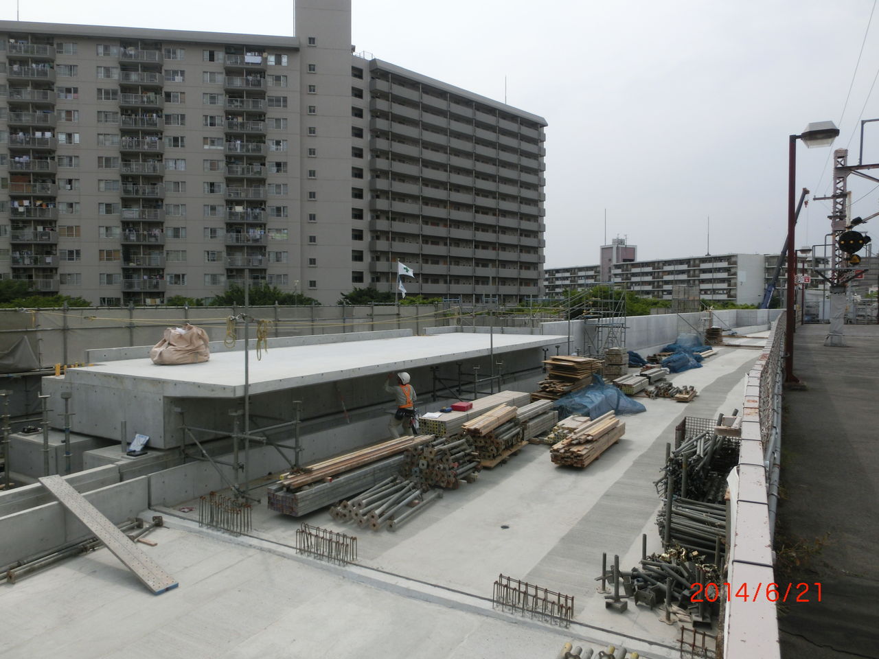 この辺りでは、ホーム土台の建設工事が進んでいます。