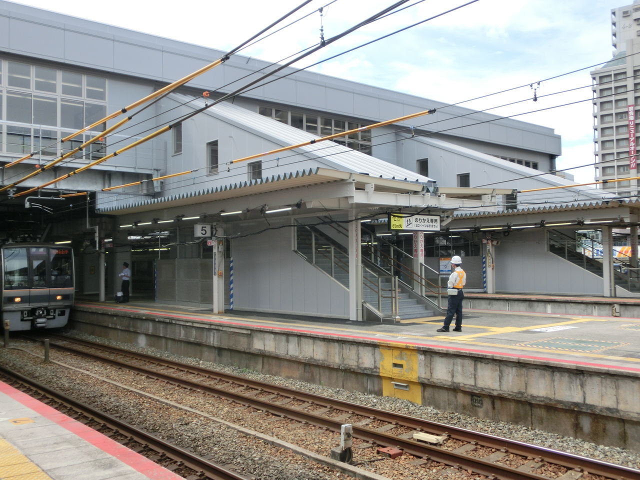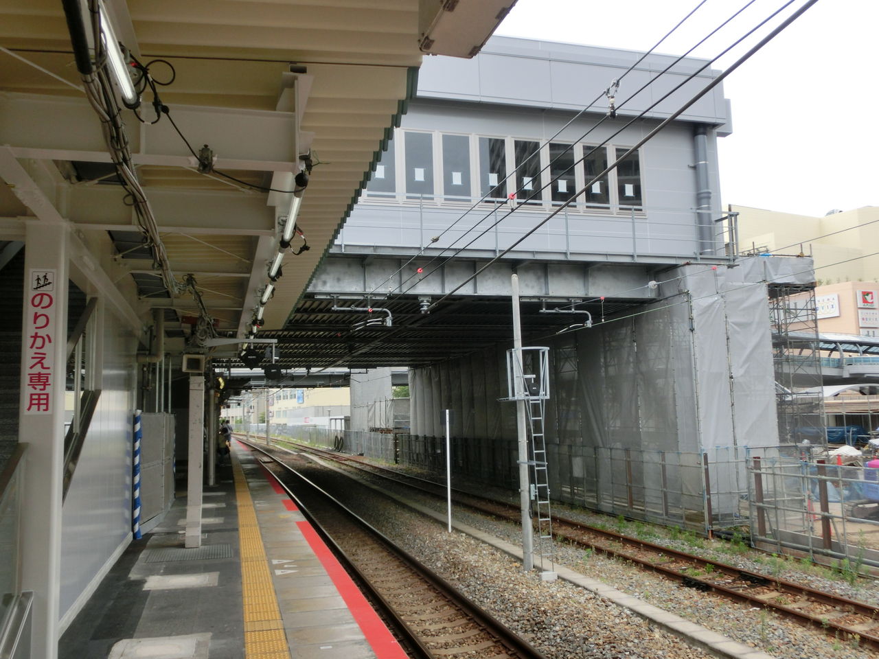 乗り換え客が多いにも関わらず、改札内コンコースや階段が狭く 慢性的に混雑していること、駅舎がホームの西側(三ノ宮側)にあり、新快速・快速の大阪側の車両(特に12号車)から階段までが遠いことなどから、在、ホームの東側(大阪側)に駅舎を増築する工事が行われています。