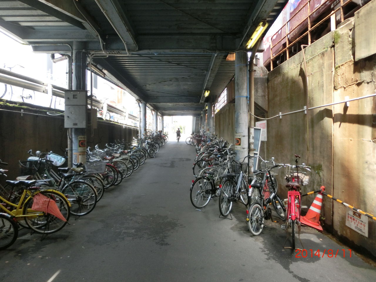駐輪場手前で右に曲がると、北側の東淡路商店街に出てきます。