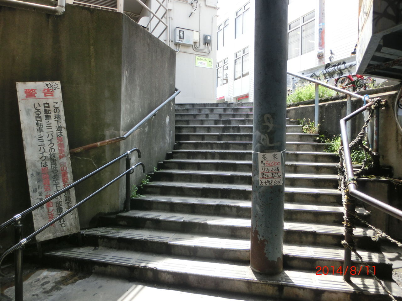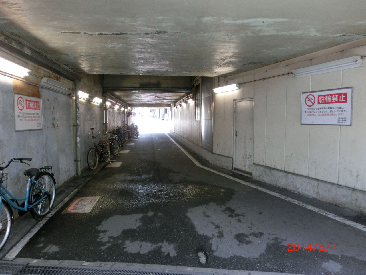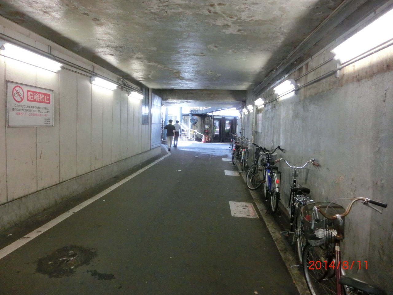 東口駅舎前の道路は、阪急の線路下をくぐって 西口側へと続いています。