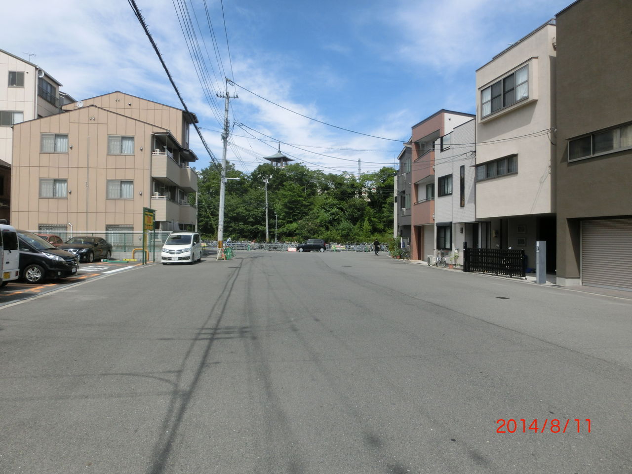 反対側へ出ると、左側には階段、右側には緩やかな上り坂。