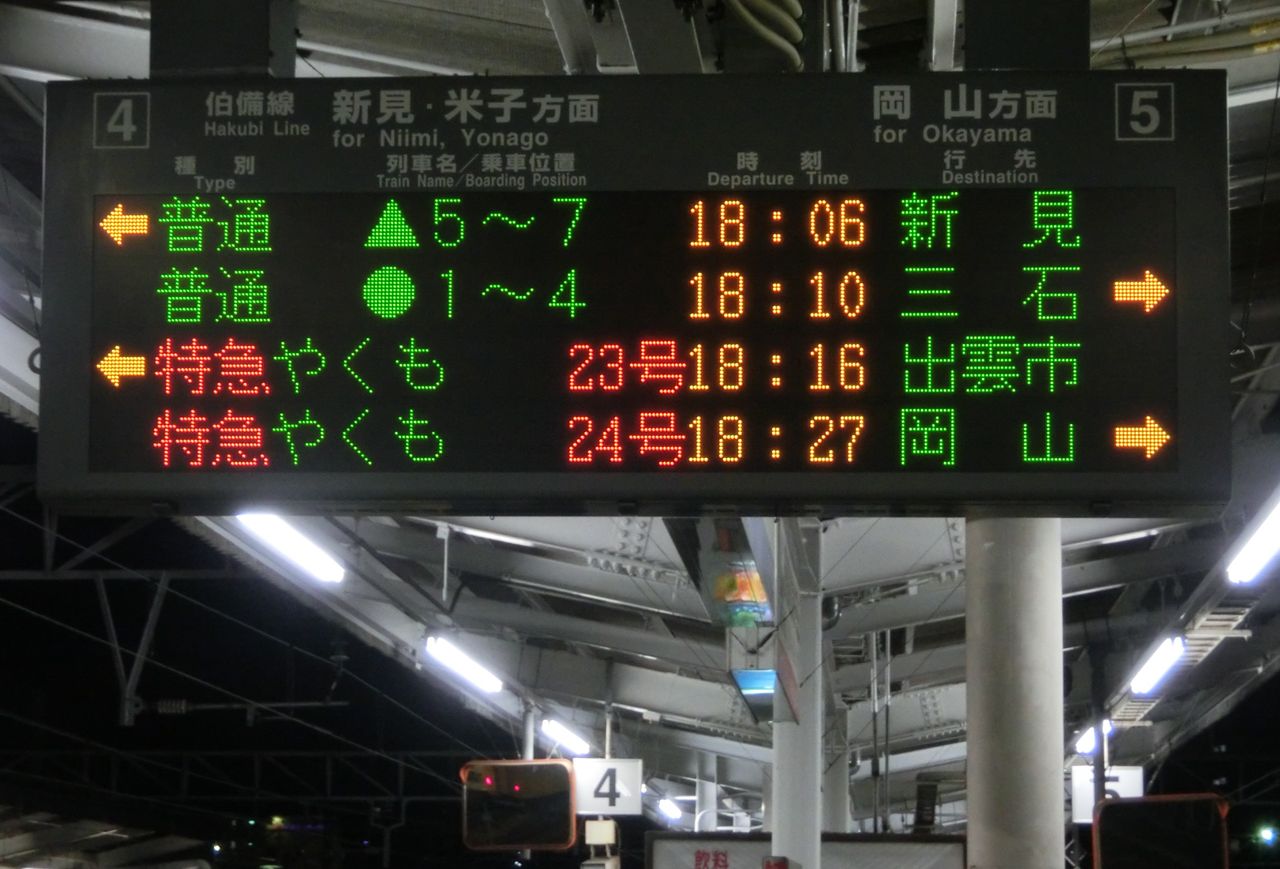 最後に、現在 岡山駅・倉敷駅・福山駅のホームに設置されている発車標を ちょっとだけ紹介しておきます。