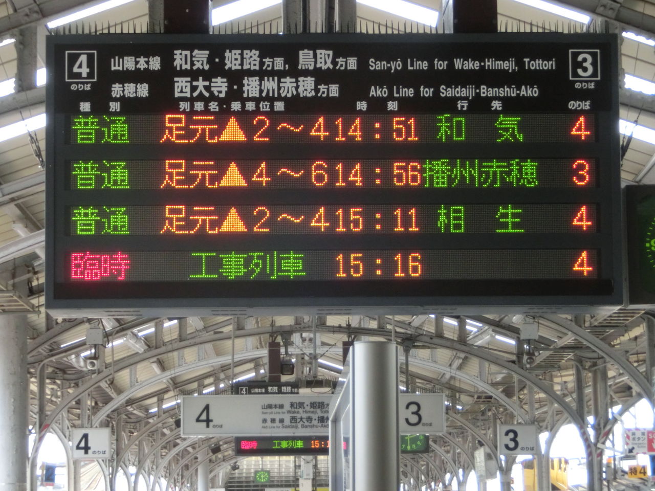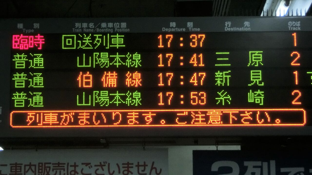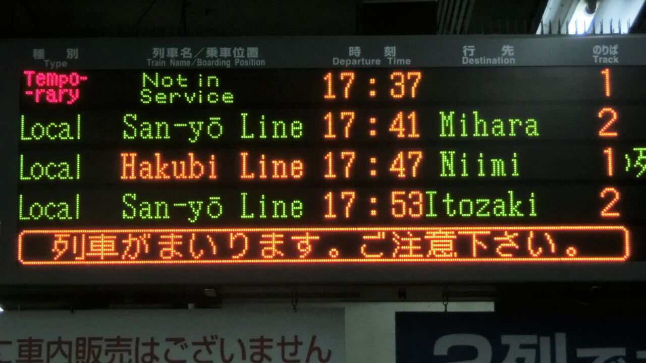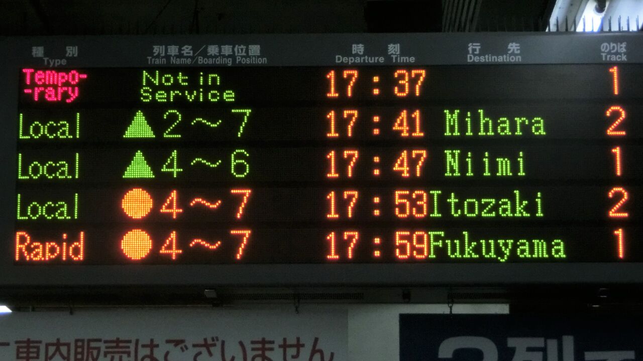 今回も、そんな 岡山駅の在来線ホームに設置されている電光掲示板の話です。