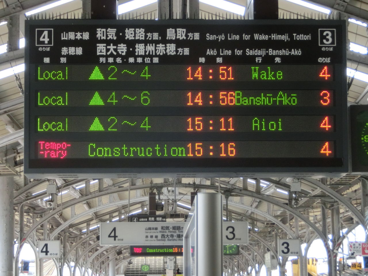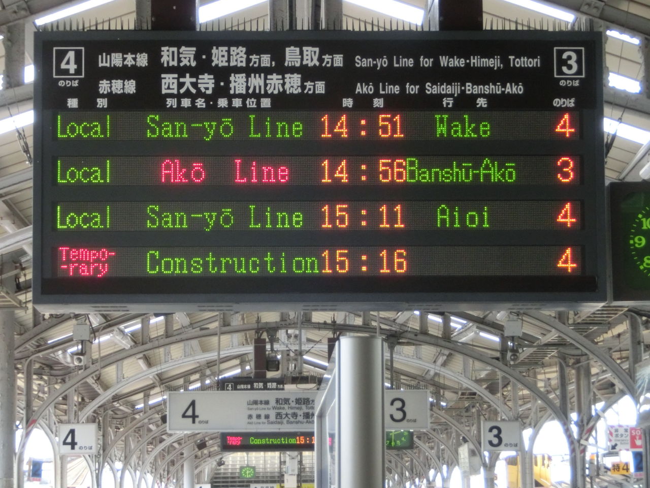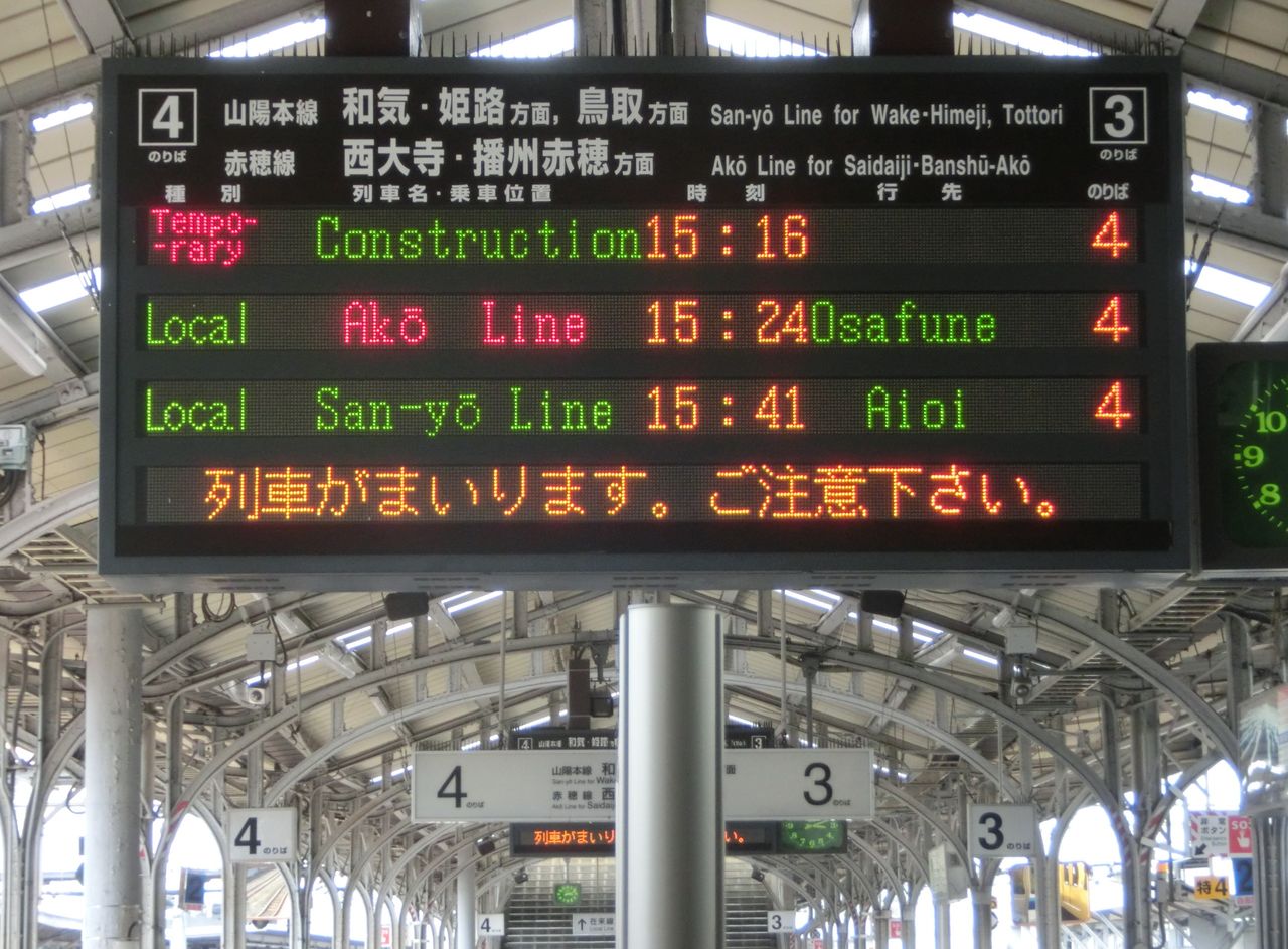 今回も、そんな 岡山駅の在来線ホームに設置されている電光掲示板の話です。