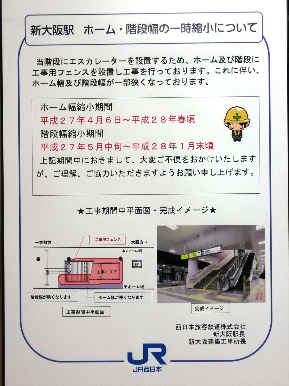 先日、2015年4月現在の工事の様子 を紹介したのですが、新15・16番のりばの京都側の階段に こんなものが掲示されていました。