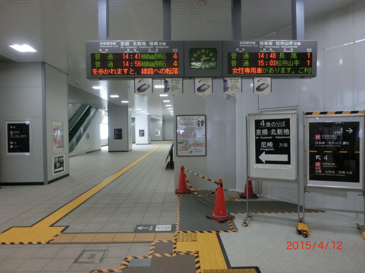 学研都市線の鴫野駅では、おおさか東線 放出~新大阪駅間の建設に伴い、新しいホームを増設する工事が3年以上に渡って行われてきましたが、ついに完成し、2015年3月29日から使用開始されています。