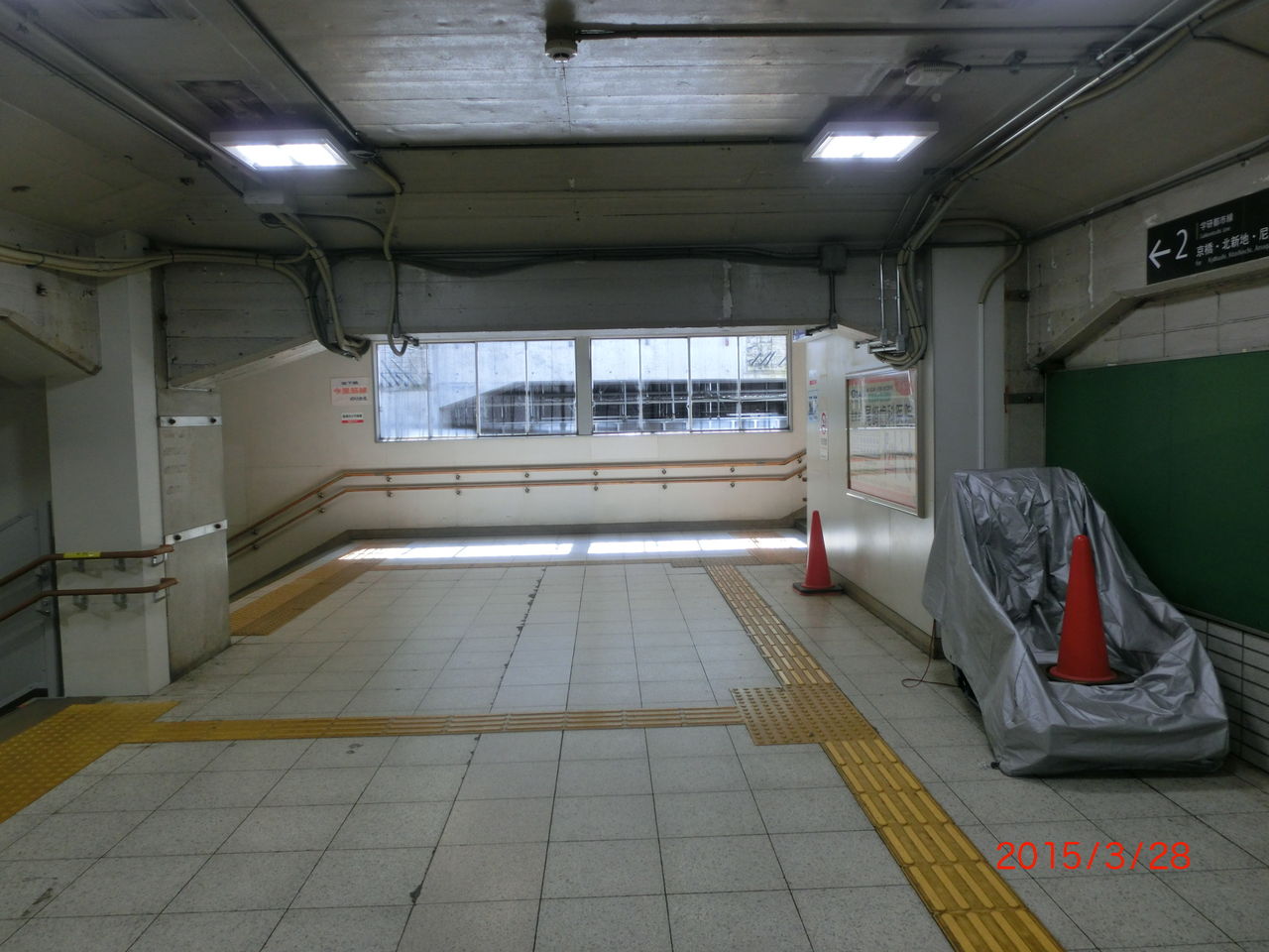 2番のりばへ続く階段が 白い壁で塞がれていました。