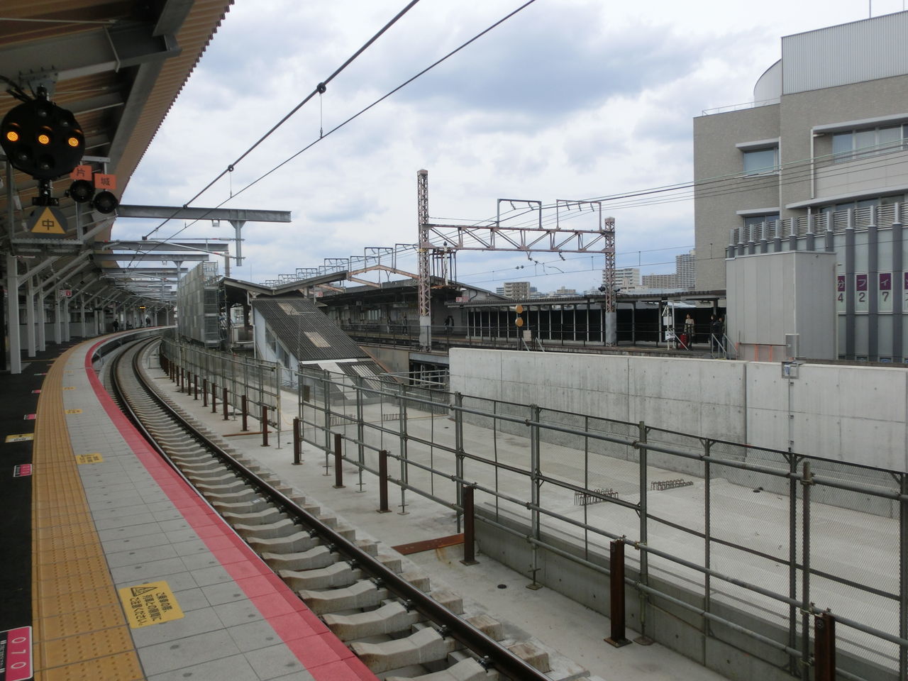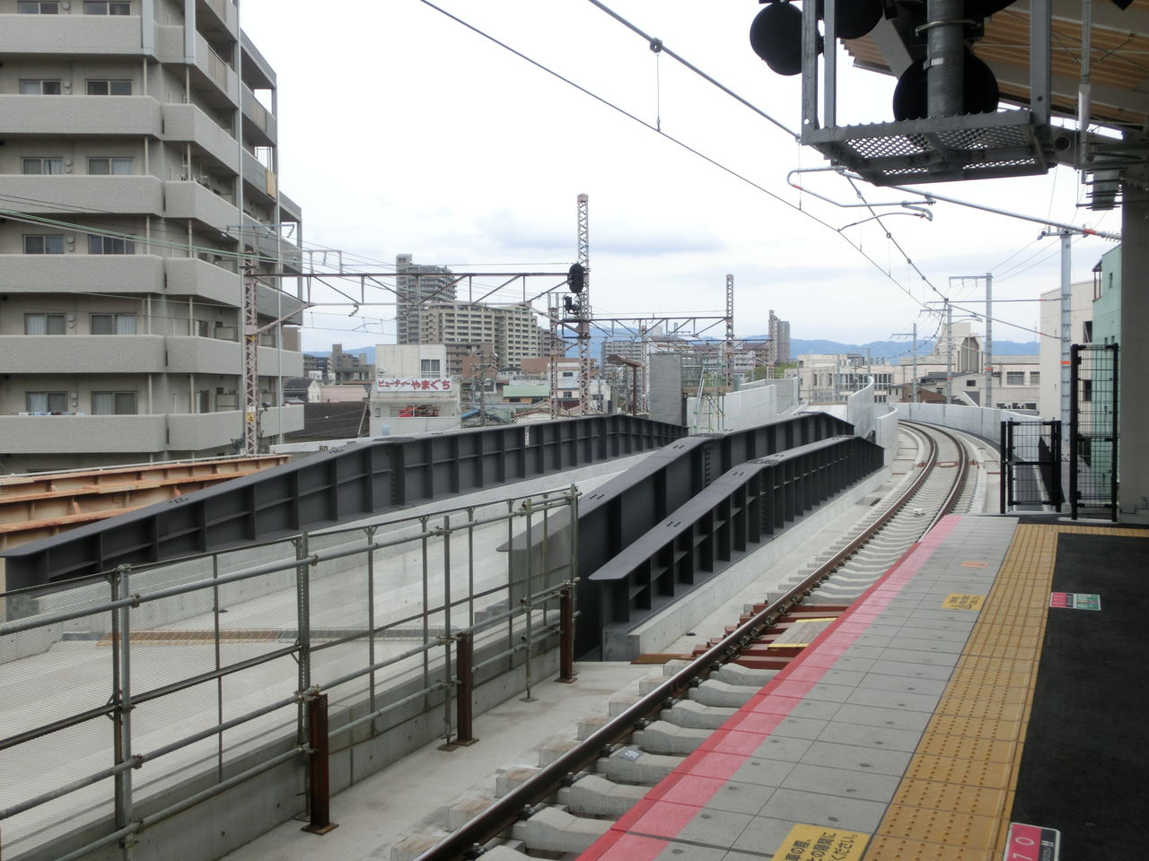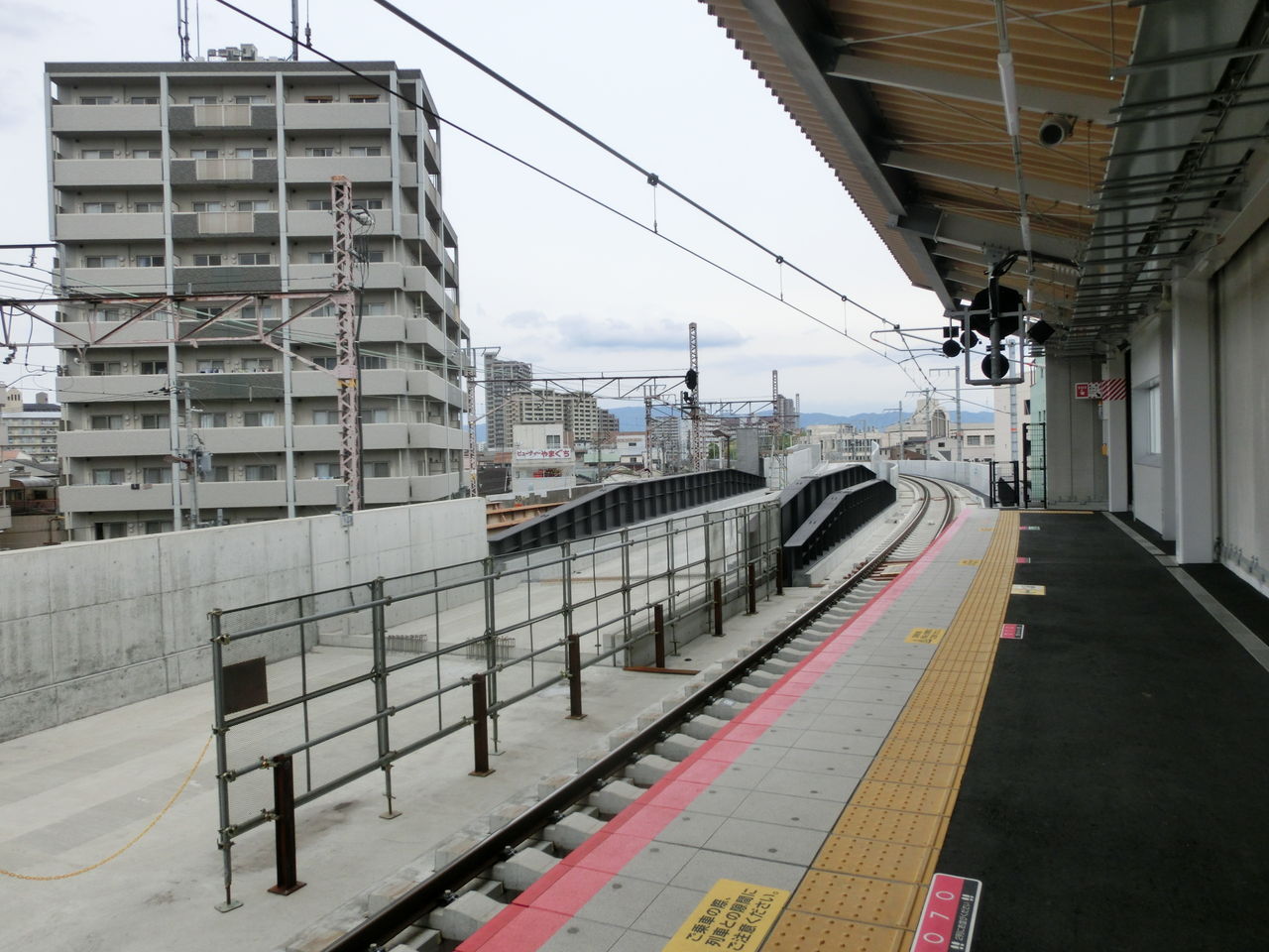 工事後は、このさらに先で 3番のりばの線路が おおさか東線(1・2番のりば)の線路をオーバークロスすることになります。