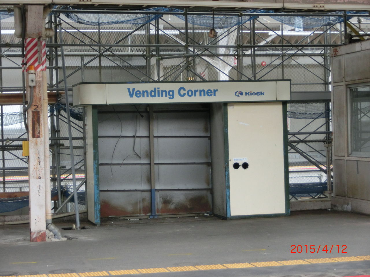電光掲示板や駅名標、案内看板、のりば番号看板、イス、自動販売機、4番のりば側の柵が撤去されています。