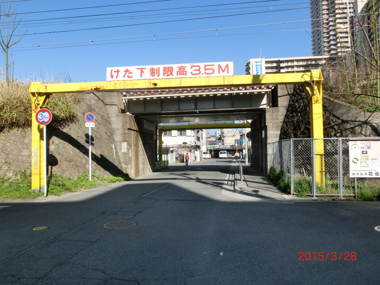 前回訪れた時、制限高3.0mの標識が5枚設置されていましたが、手前に線路が増設されたため、標識が白い壁で隠れてしまってます。