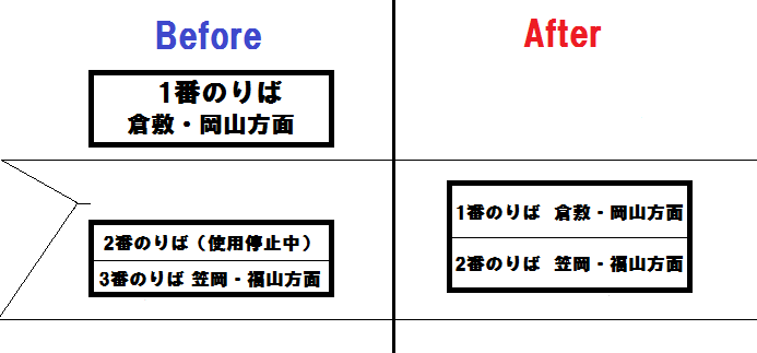 同時に、3番のりばが 2番のりばに改称されました。