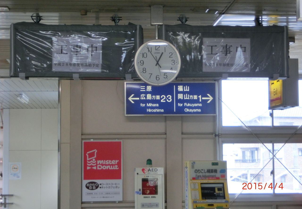 まずは、1番のりば(山陽線上り 福山・岡山方面行きホーム)から。