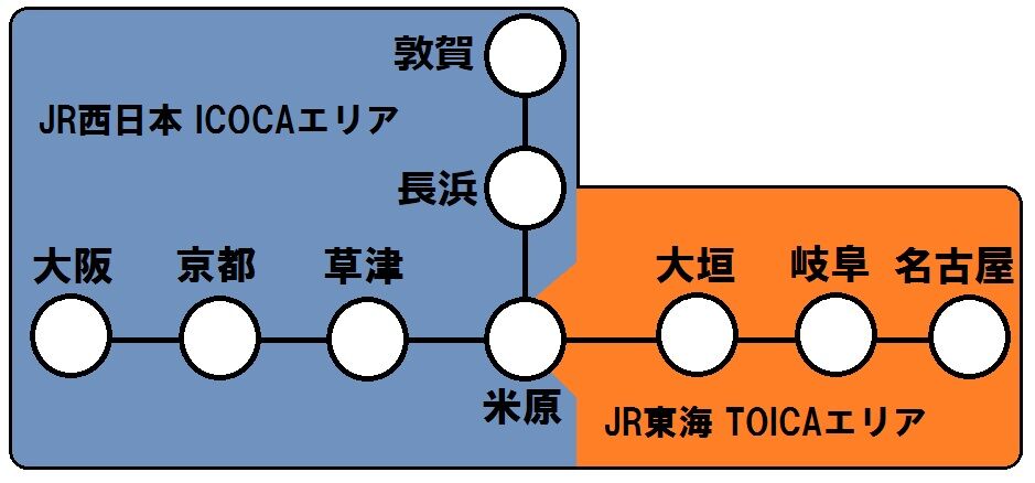 名古屋駅や岐阜駅、大垣駅からICカードで乗車し、米原駅から先の駅(彦根・草津・京都方面、長浜・敦賀方面)でICカードで下車すること。