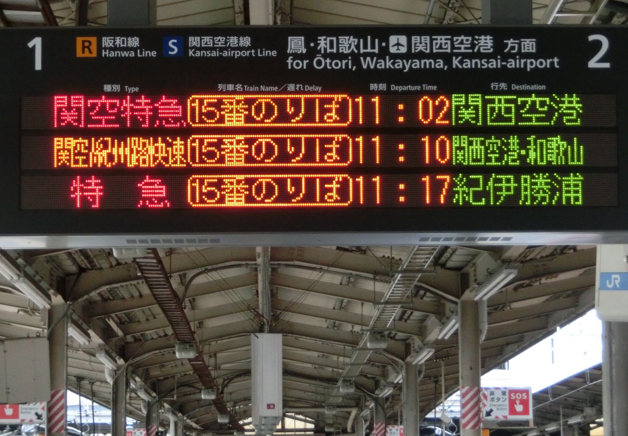 そこで今回、新大阪駅・天王寺駅・和歌山駅と きのくに線の特急停車駅で発車標の表示を撮影してきました。