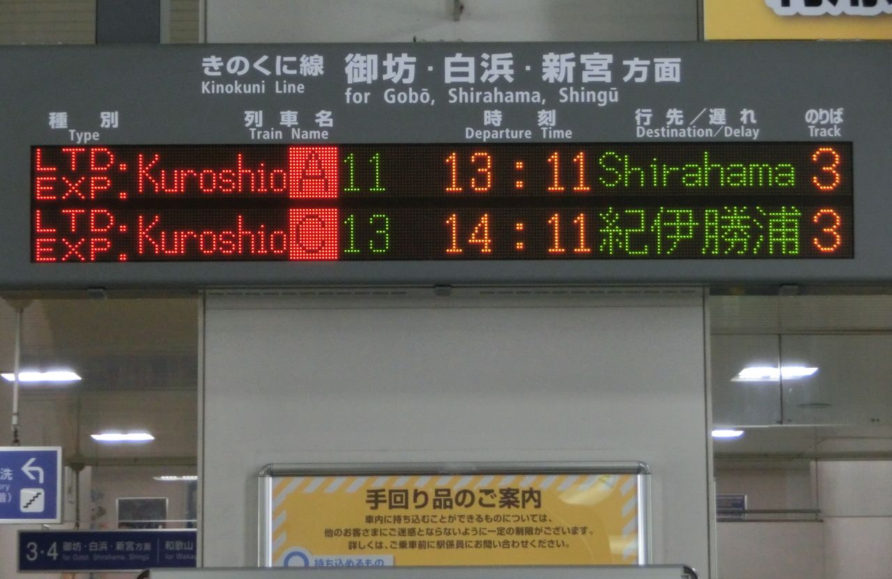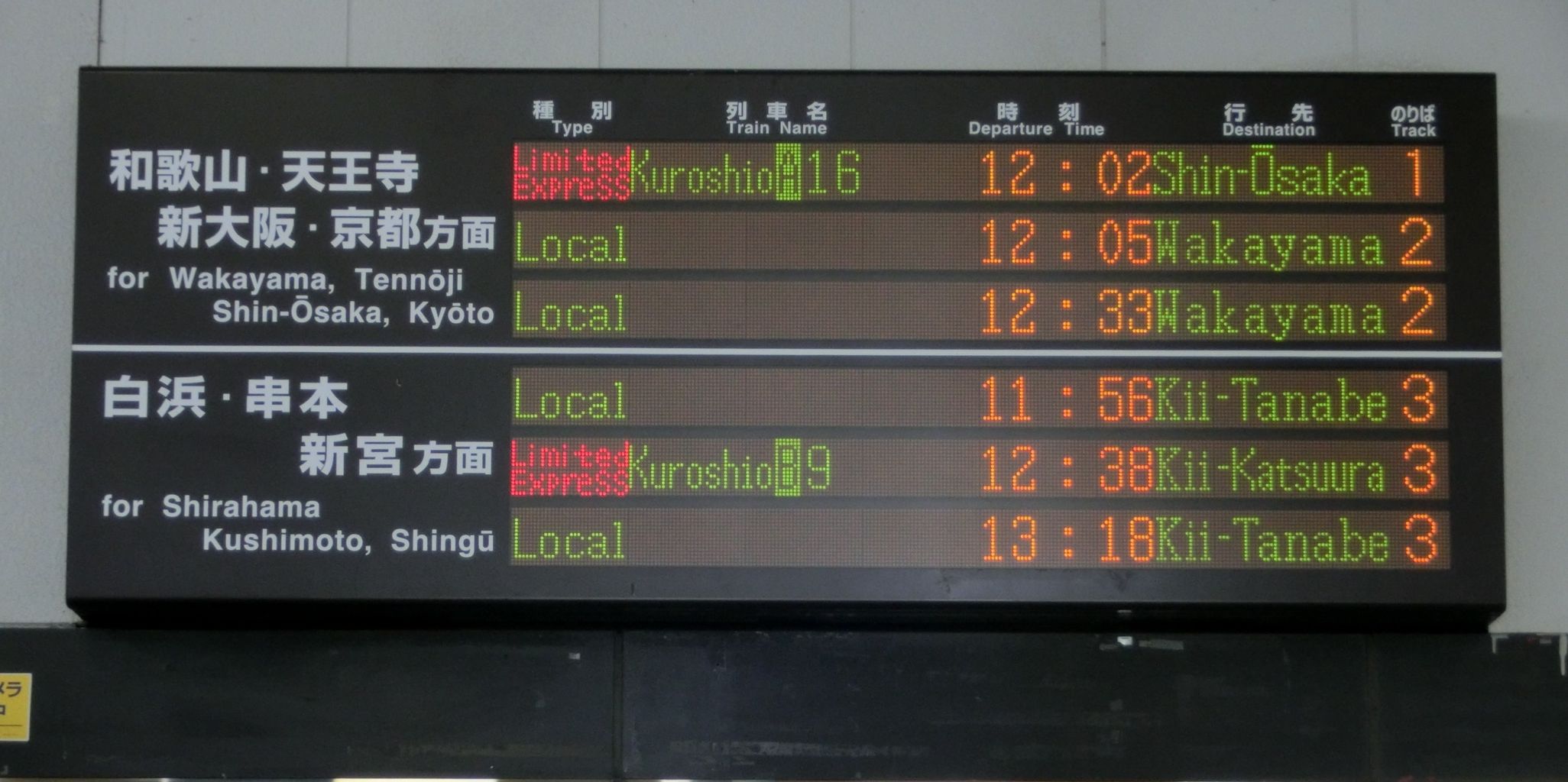 そこで今回、新大阪駅・天王寺駅・和歌山駅と きのくに線の特急停車駅で発車標の表示を撮影してきました。