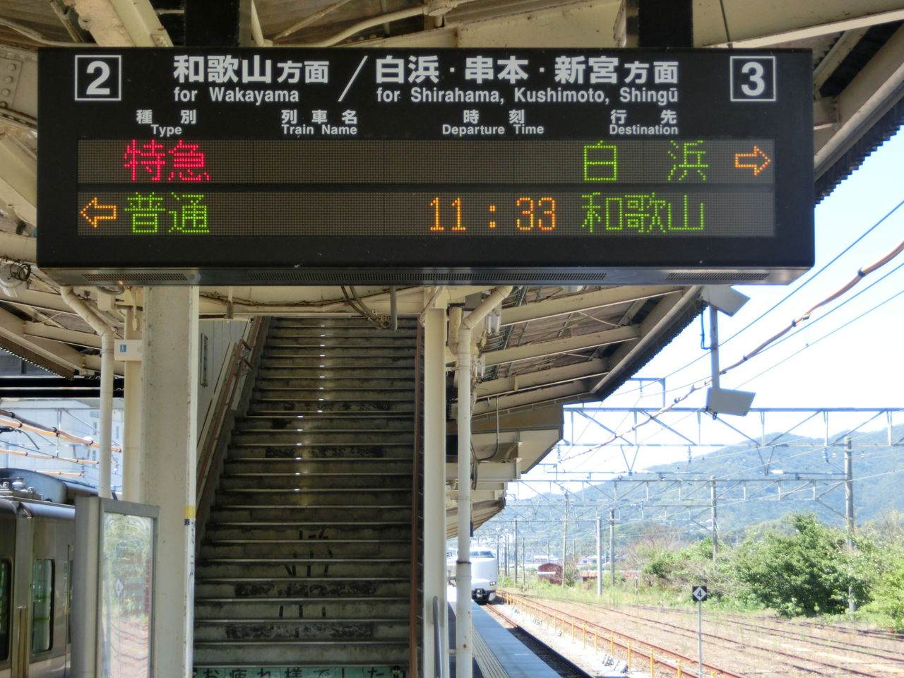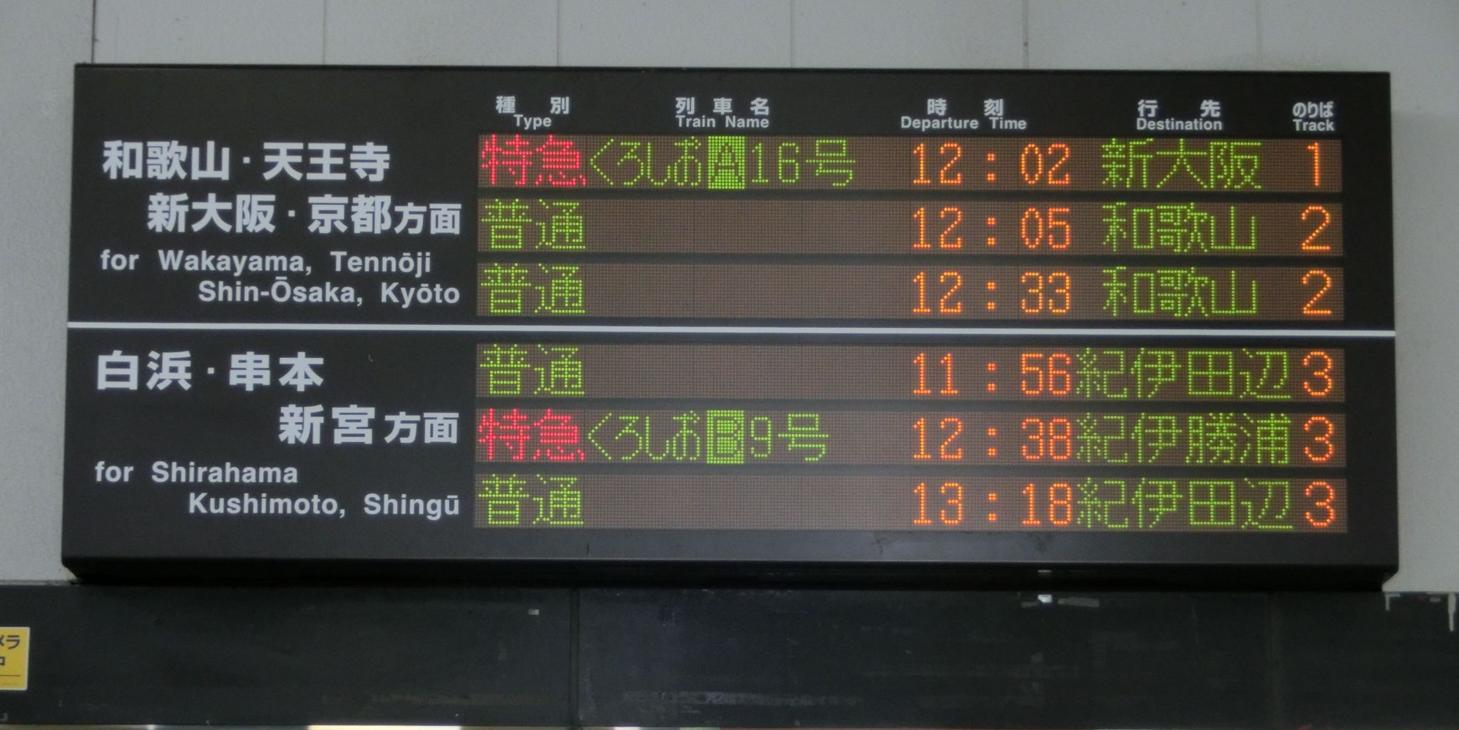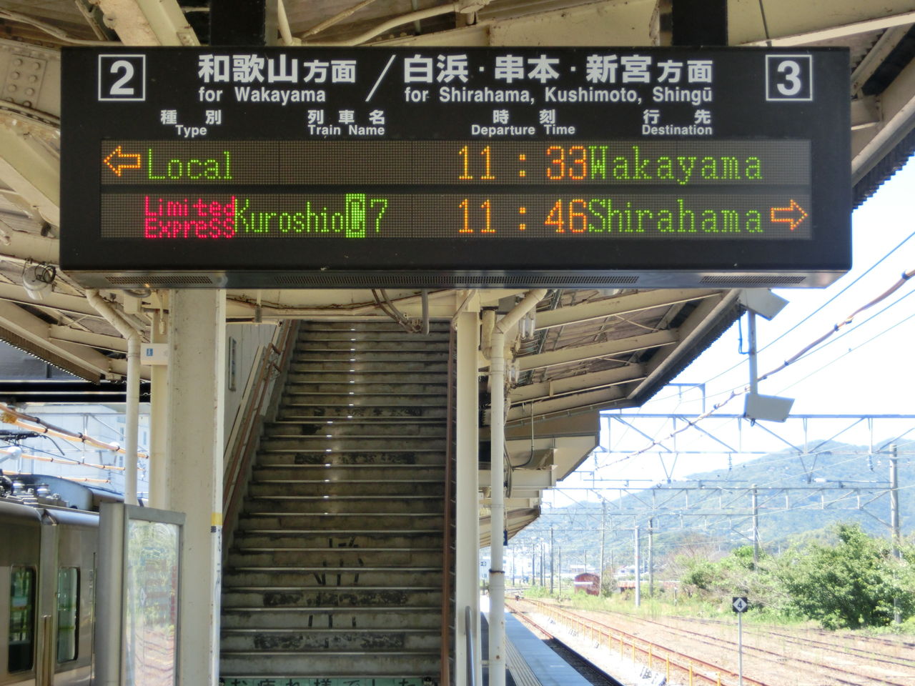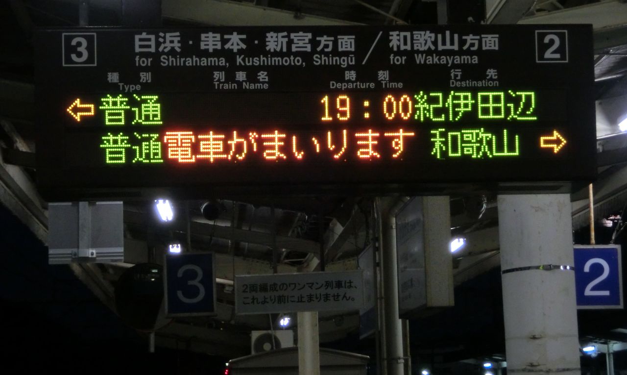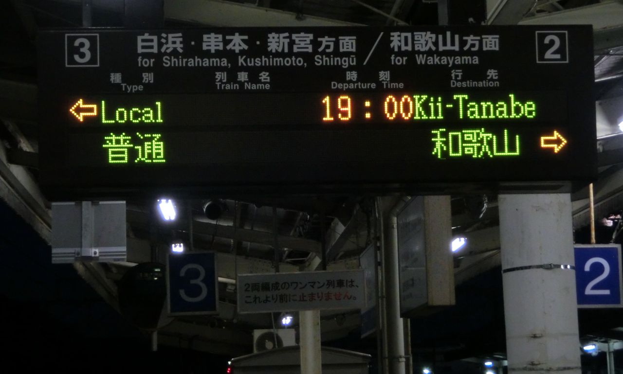 次の記事では、紀伊田辺駅の表示を紹介します。