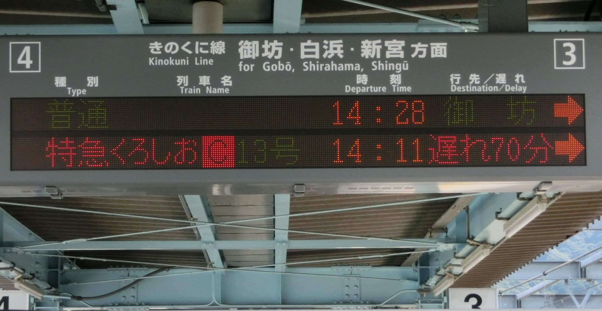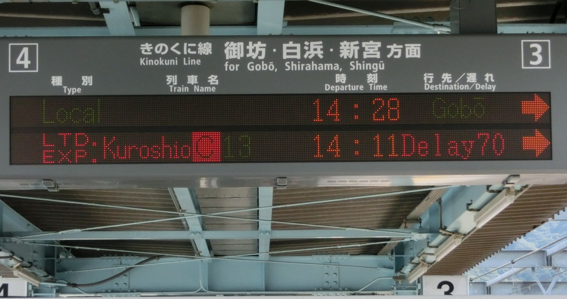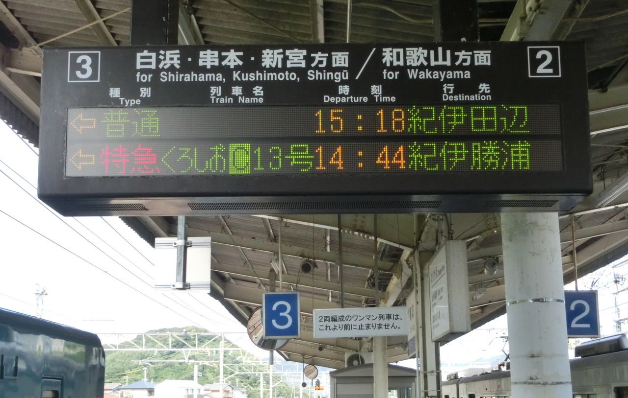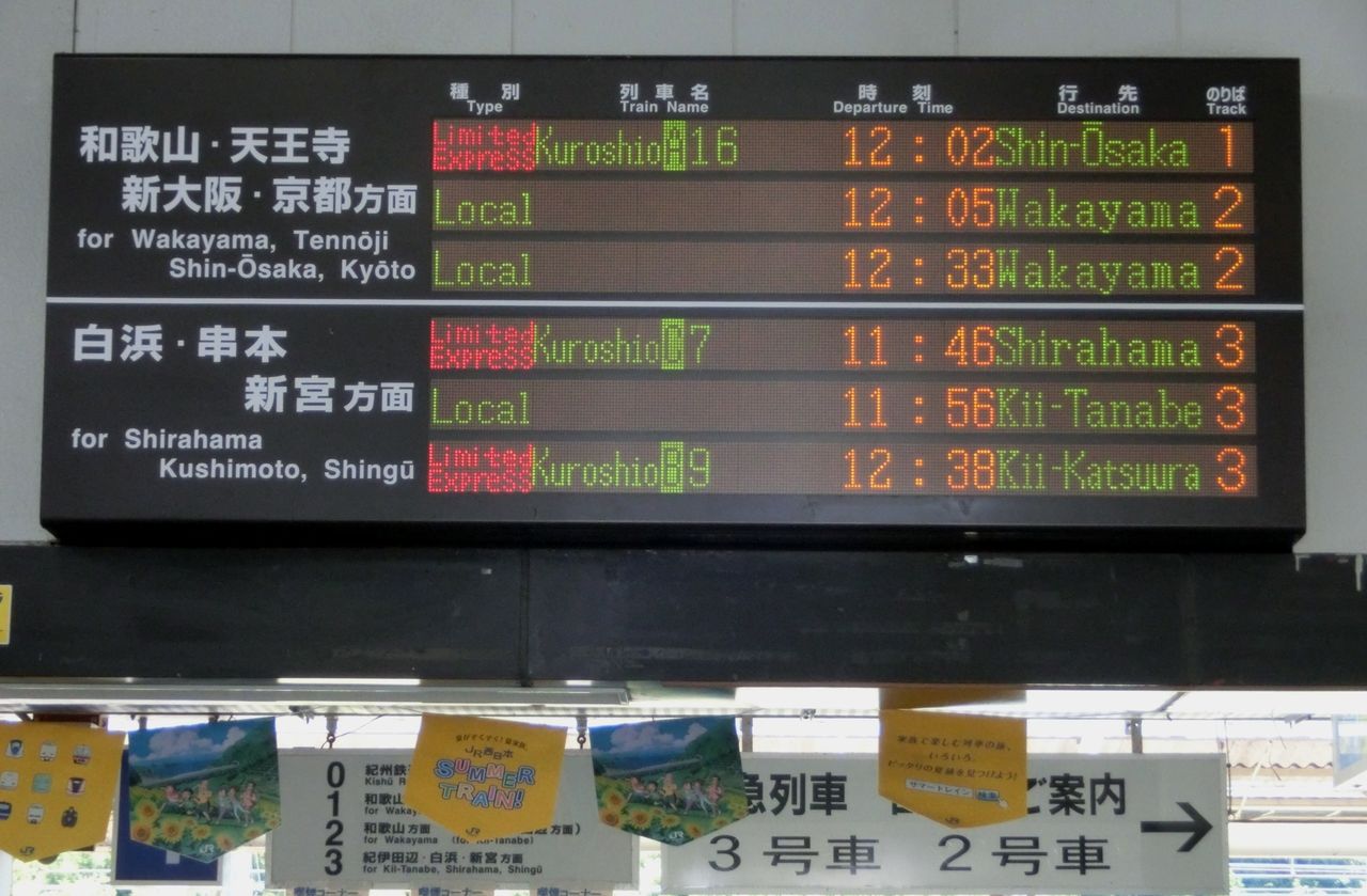 次の記事では、紀伊田辺駅の表示を紹介します。